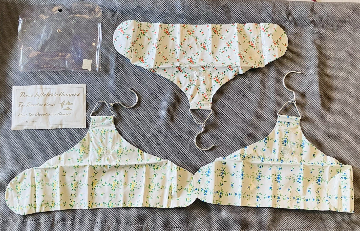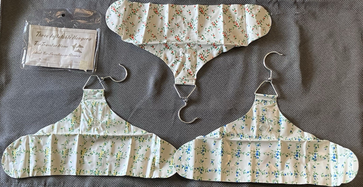 Vintage Inflatable Travel Hangers MCM Sweet Floral Pattern w/7x5 Travel Case 3