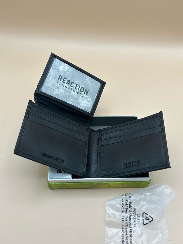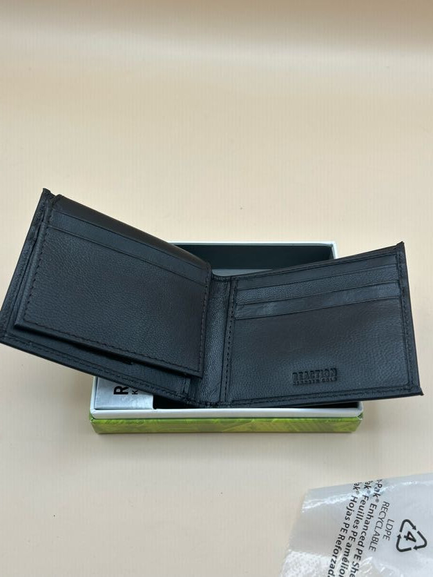 как выглядит Kenneth Cole REACTION Mens Soft Handcrafted Leather Bifold Wallet Dark Brown фото