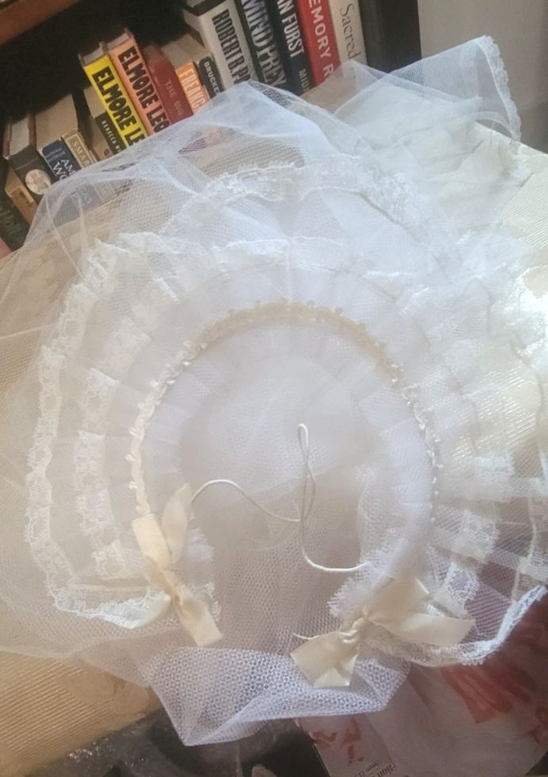 как выглядит First HOLY COMMUNION/ Flower Girl Veil Headpiece Overlapping Tulle Lace VTG