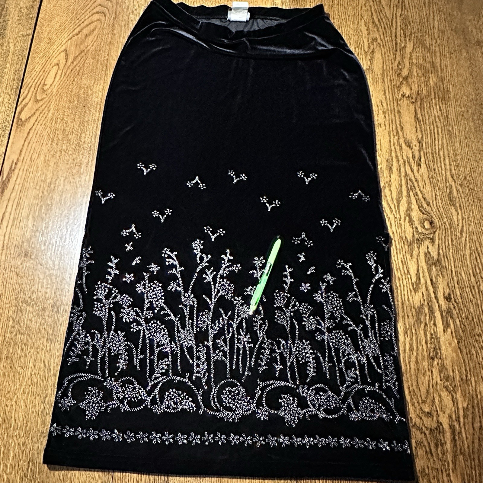 как выглядит Vtg Velvet Plush Black Maxi Skirt Bling Petite Large Whimsigoth FLAW Stretch USA фото