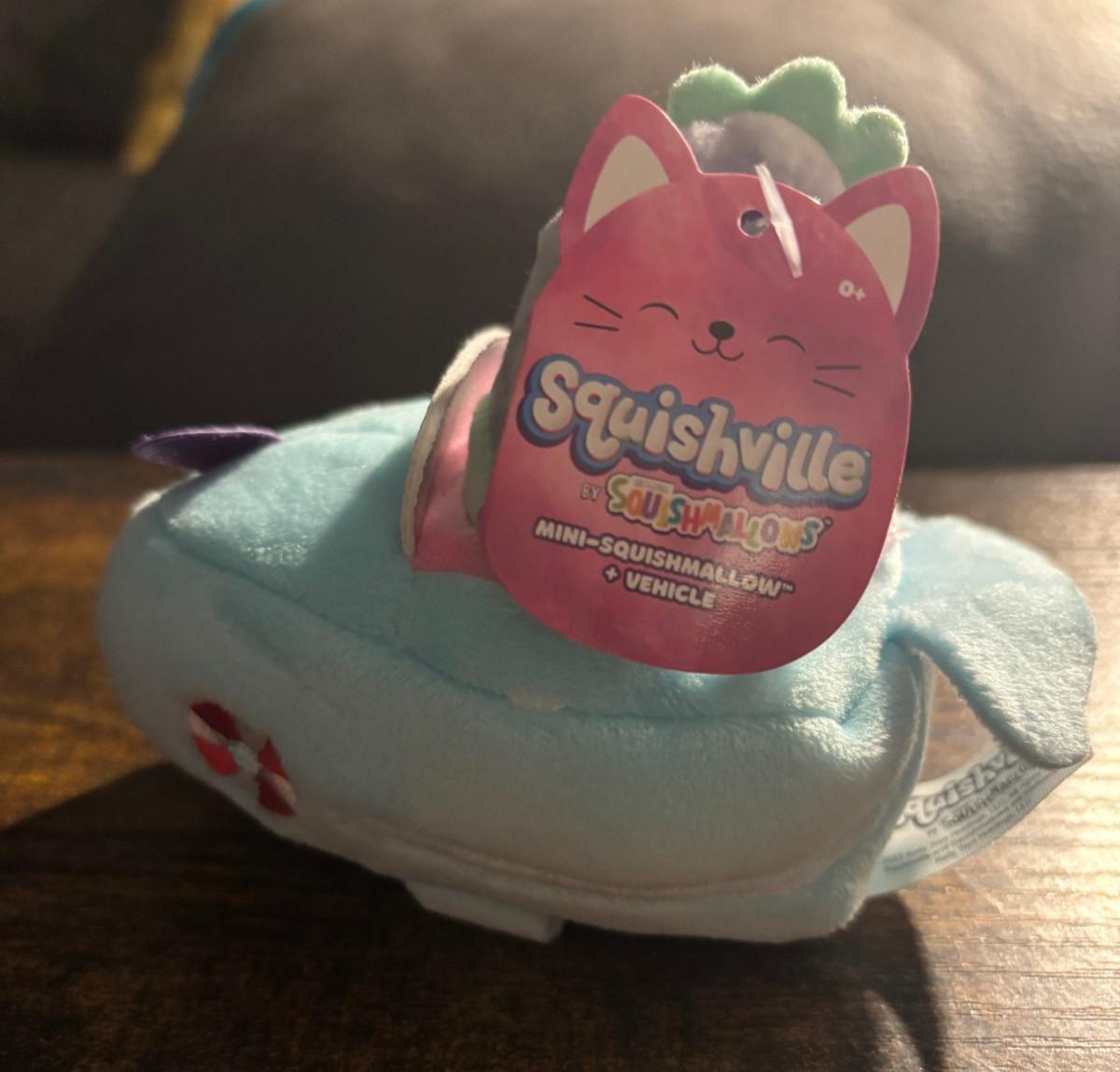 Squishmallow Squishville 2 Inch T-Rex Chuey and Vehicle Mini Plush NEW NWT