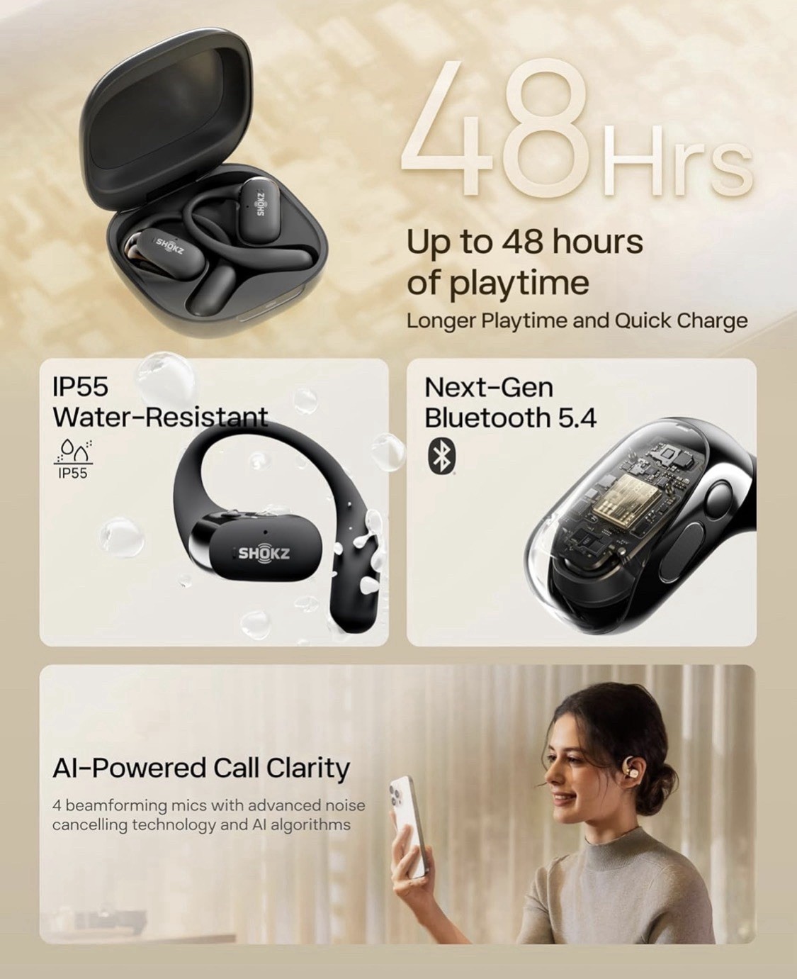 New Shokz OpenFit 2 True Wireless Open-Ear Earphones - Black T920