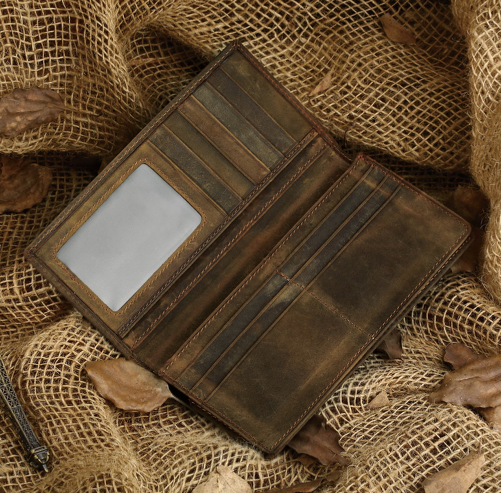 как выглядит New Mens Genuine Leather RFID Blocking Bifold New Brown Long Wallet Card Holder фото