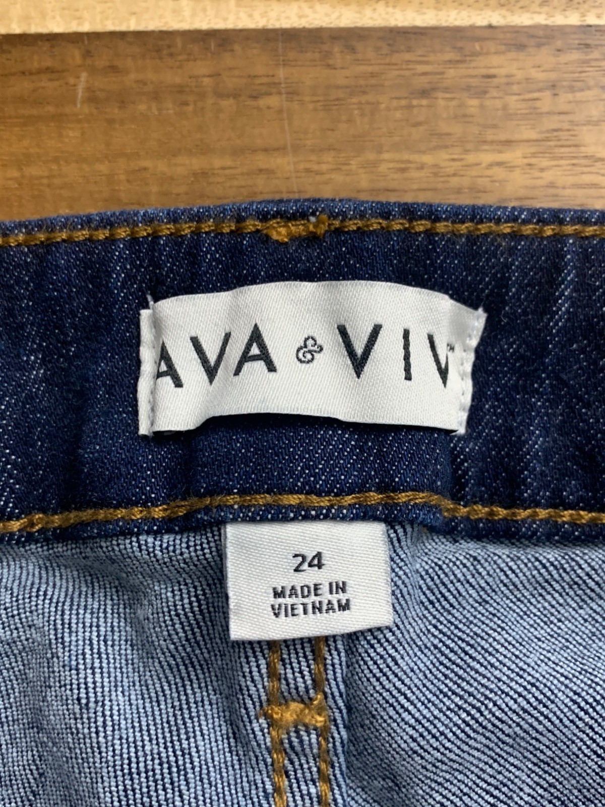 как выглядит Ava Viv Womens High Rise Dark Blue Denim Jeans Flare Stretch Plus Size 24 фото