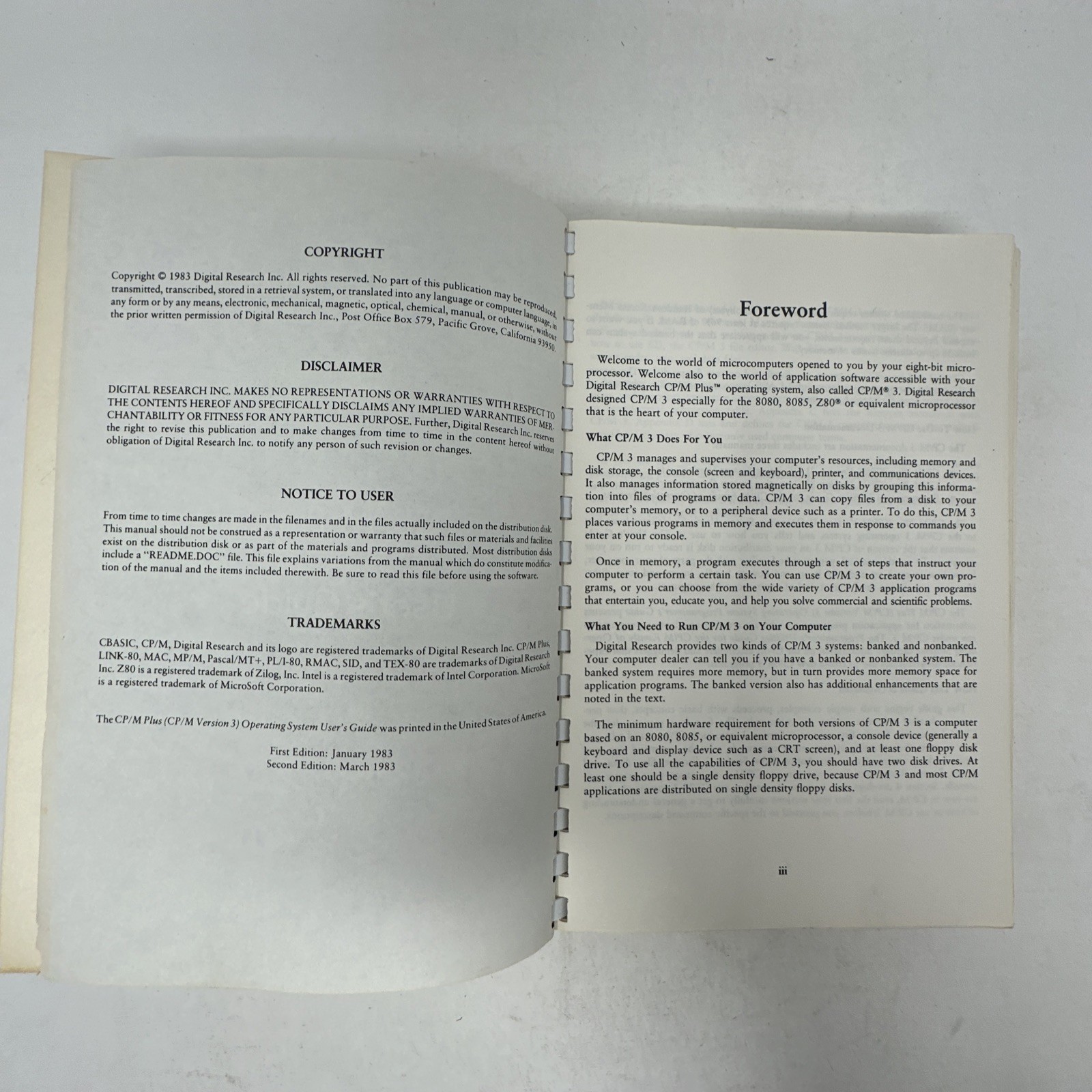 как выглядит Digital Research CP/M Plus V3 Users Programmers System Guide VG фото
