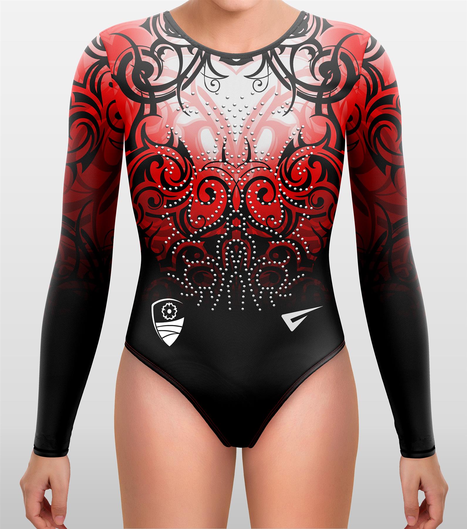 как выглядит South Ribble Gymnastics Club Andromeda Red Long Sleeve Girls Gymnastics Leotard фото