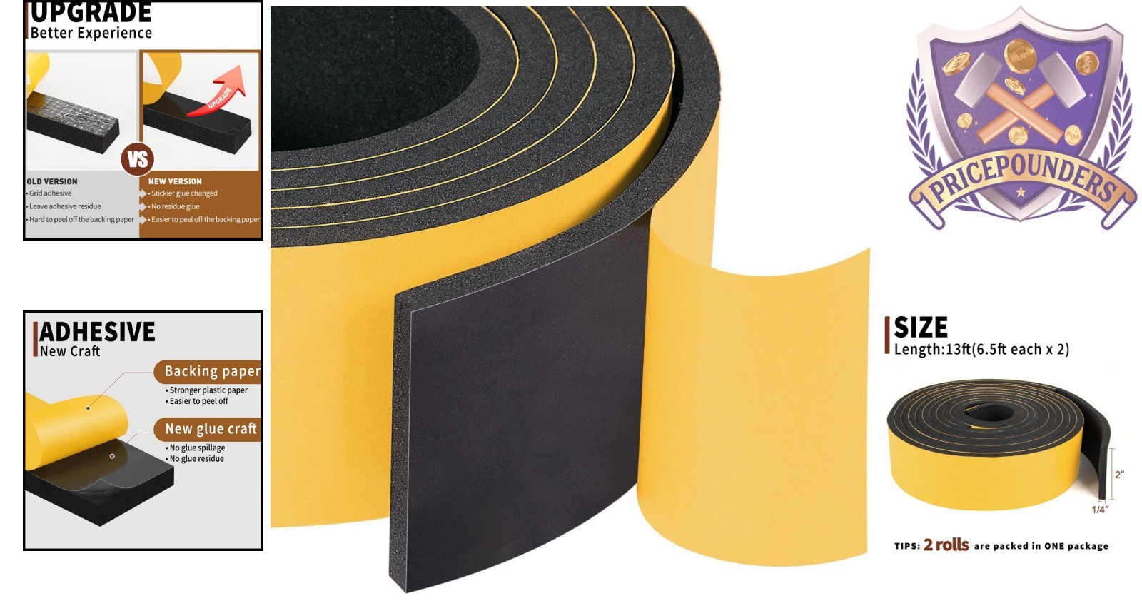 Adhesive Foam Seal Tape 2 Rolls 2x1/4 Inch Weather Strip Insulation 13 Ft