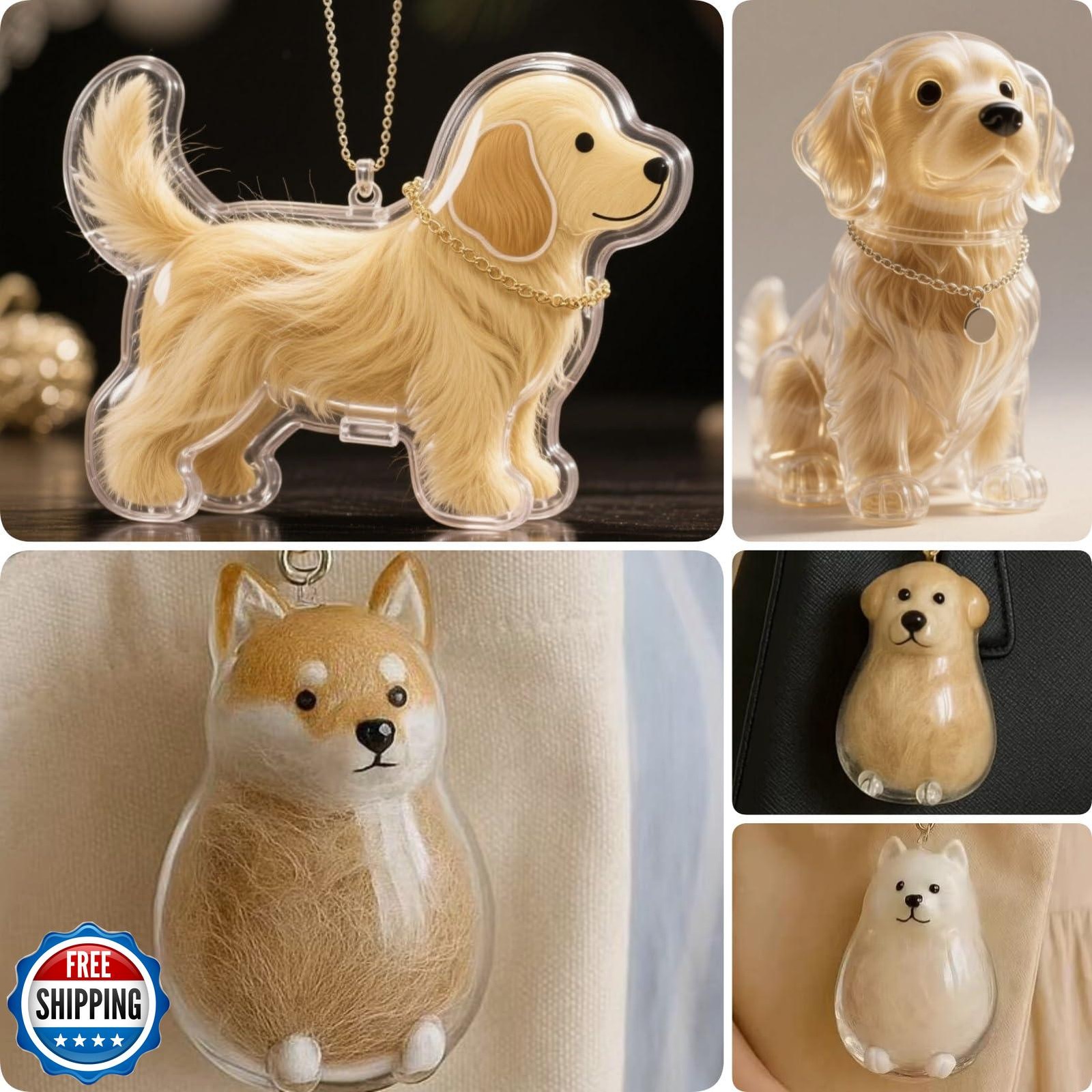 Dog Hair Collector Keychain Charm Memorial Storage Box, Dog Shape Pet Hair Me