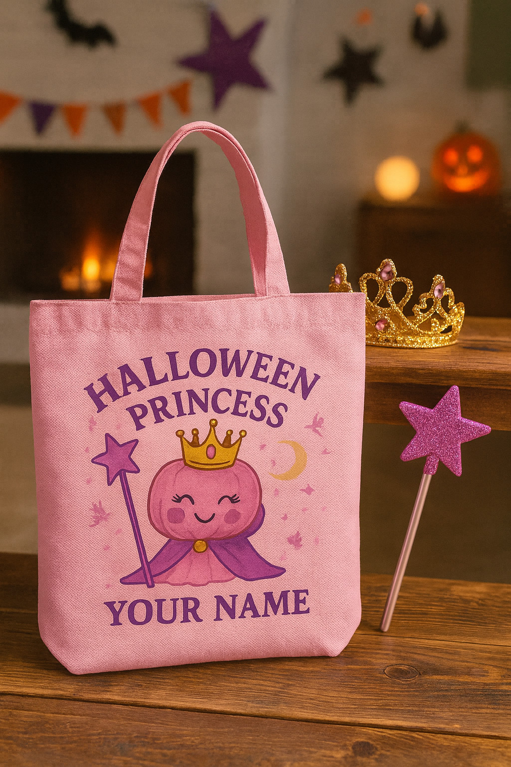 Halloween Trick or Treat Tote Bag Princess Cotton Canvas Candy Bag for Girls