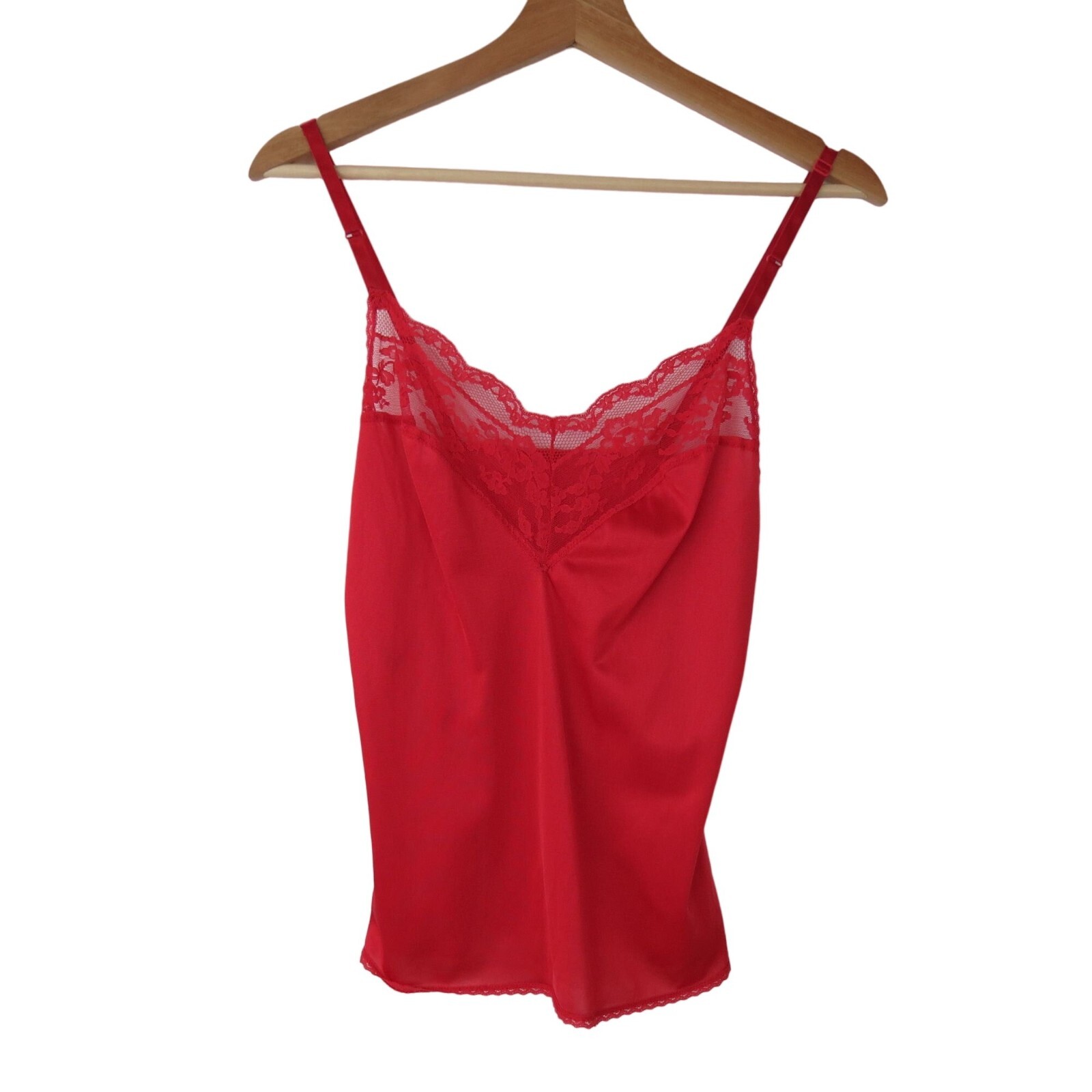 Vintage JCPENNEY 70s Women's Red Nylon Lace Camisole Tank 36 Lingerie