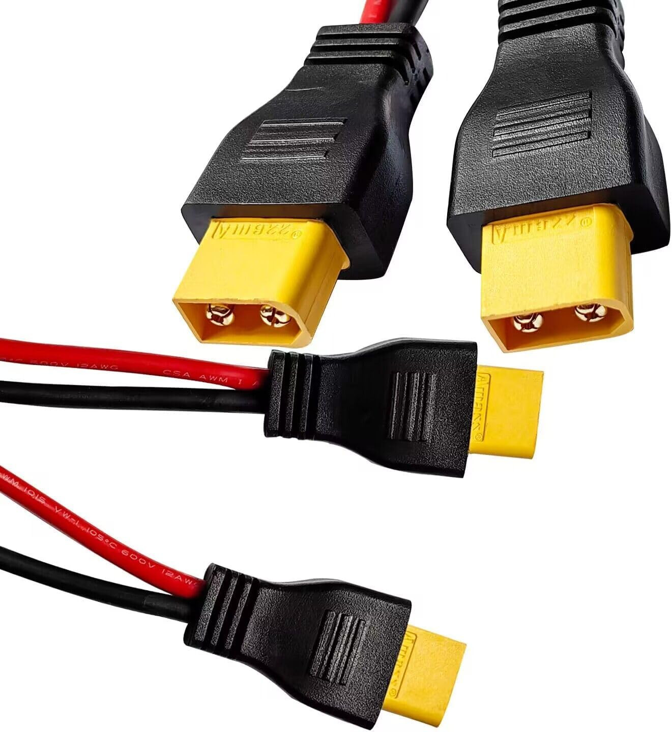 10AWG XT60 Y Splitter Cable, XT60 Female to Dual Male Connector Adapter for Sola