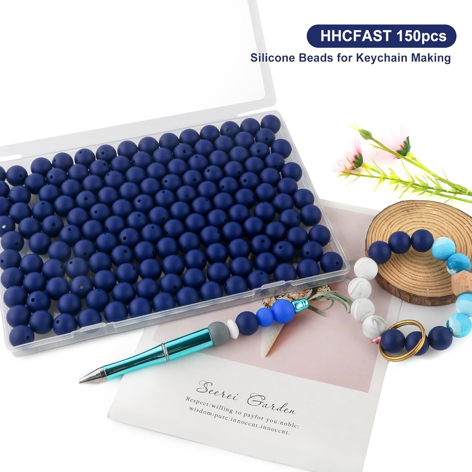 150Pcs 15Mm Silicone Beads for Keychain Making Bracelet Necklace, Bulk round Sil
