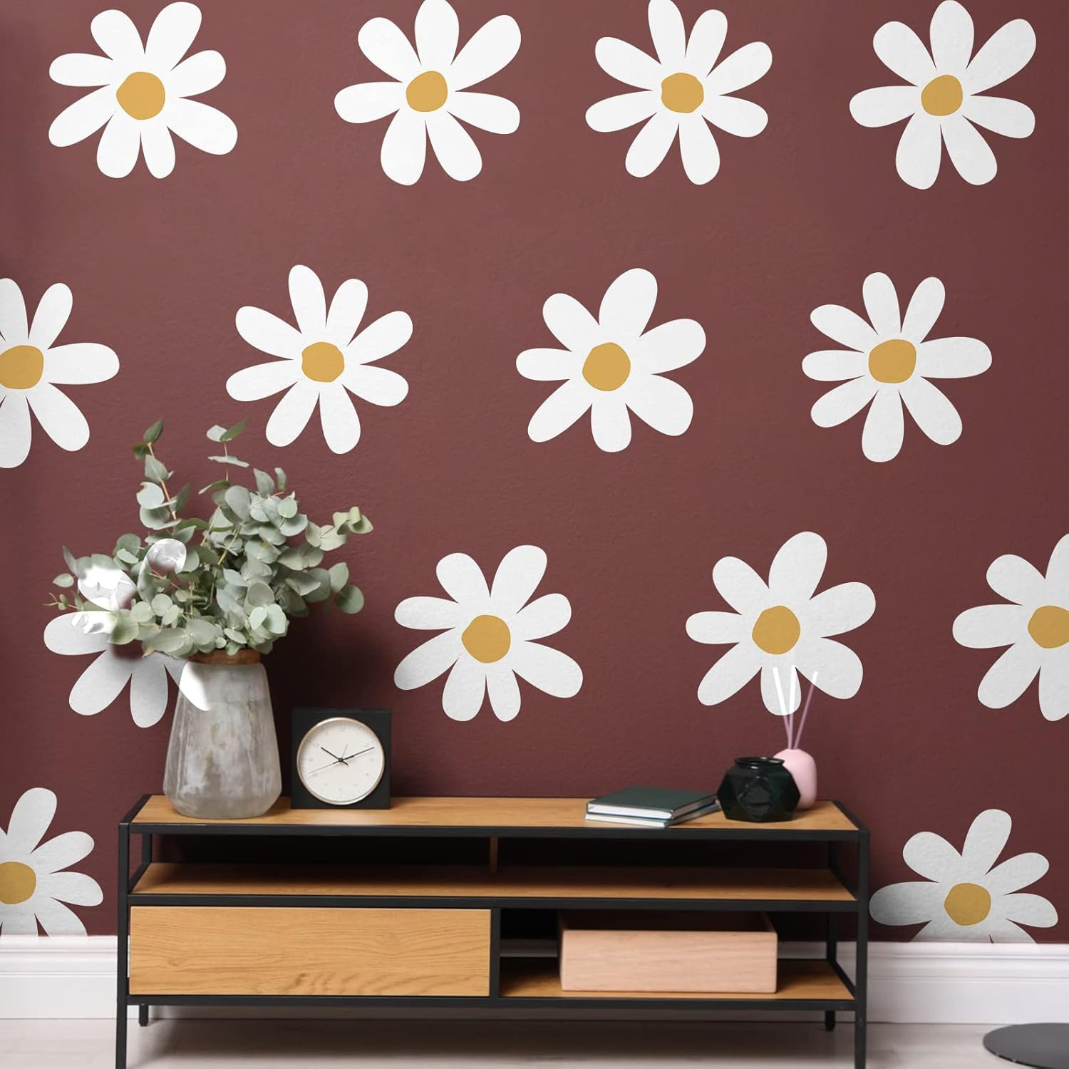 12 Sheets Daisy Wall Decal Flower Wall Sticker Cute Daisy Sticker Pink White Flo