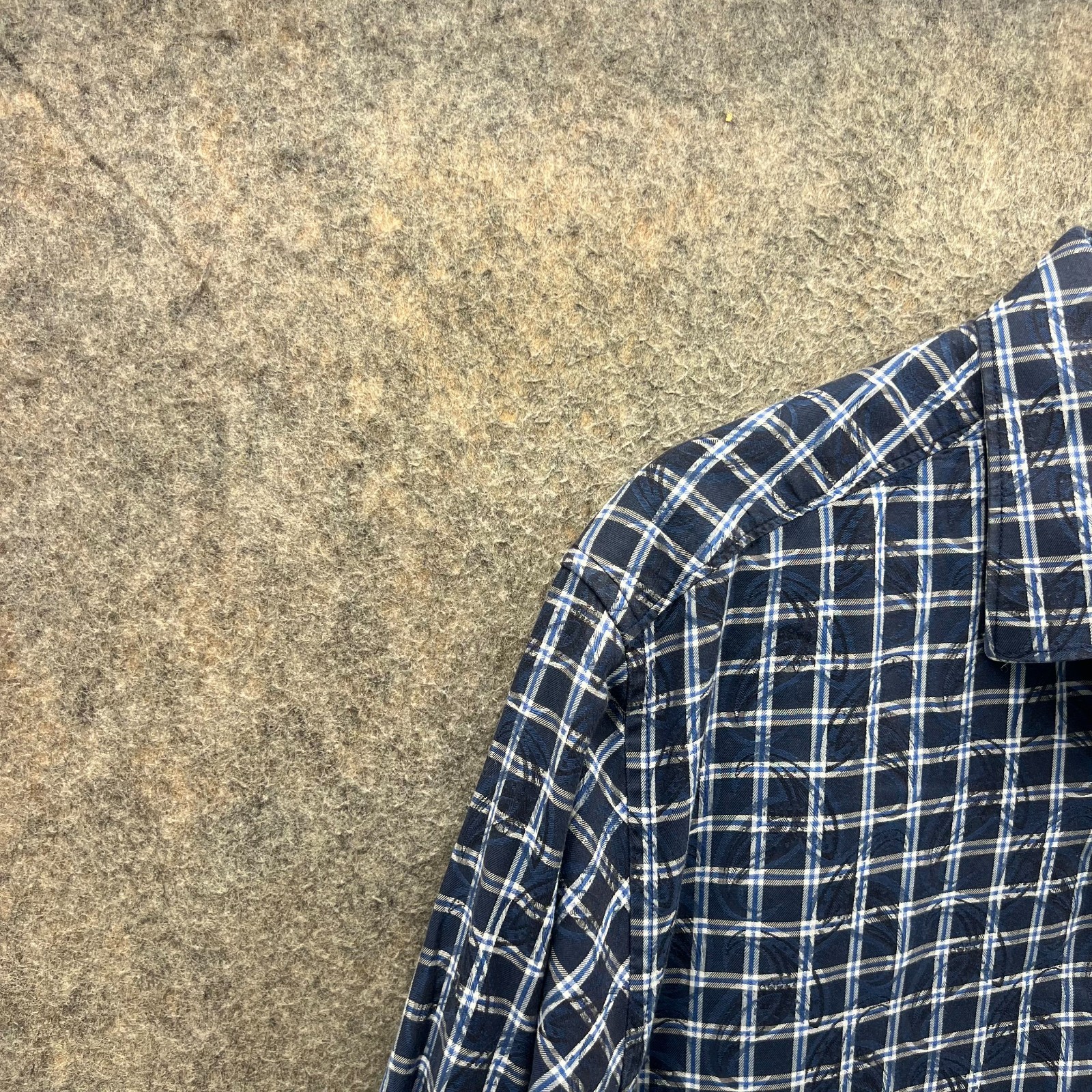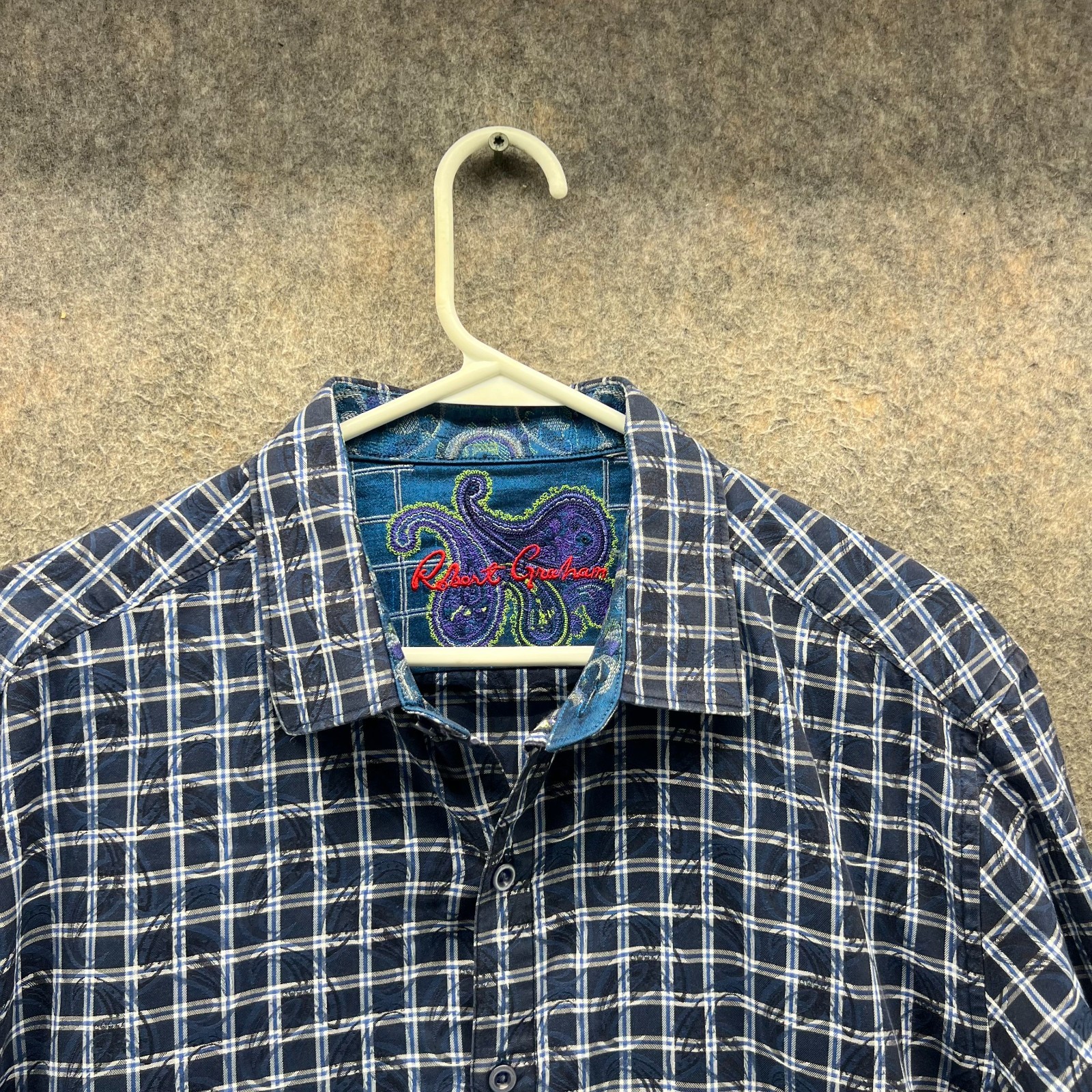 Robert Graham Shirt Mens XL Blue Navy Button Down Flip Cuff Windowpane Paisley
