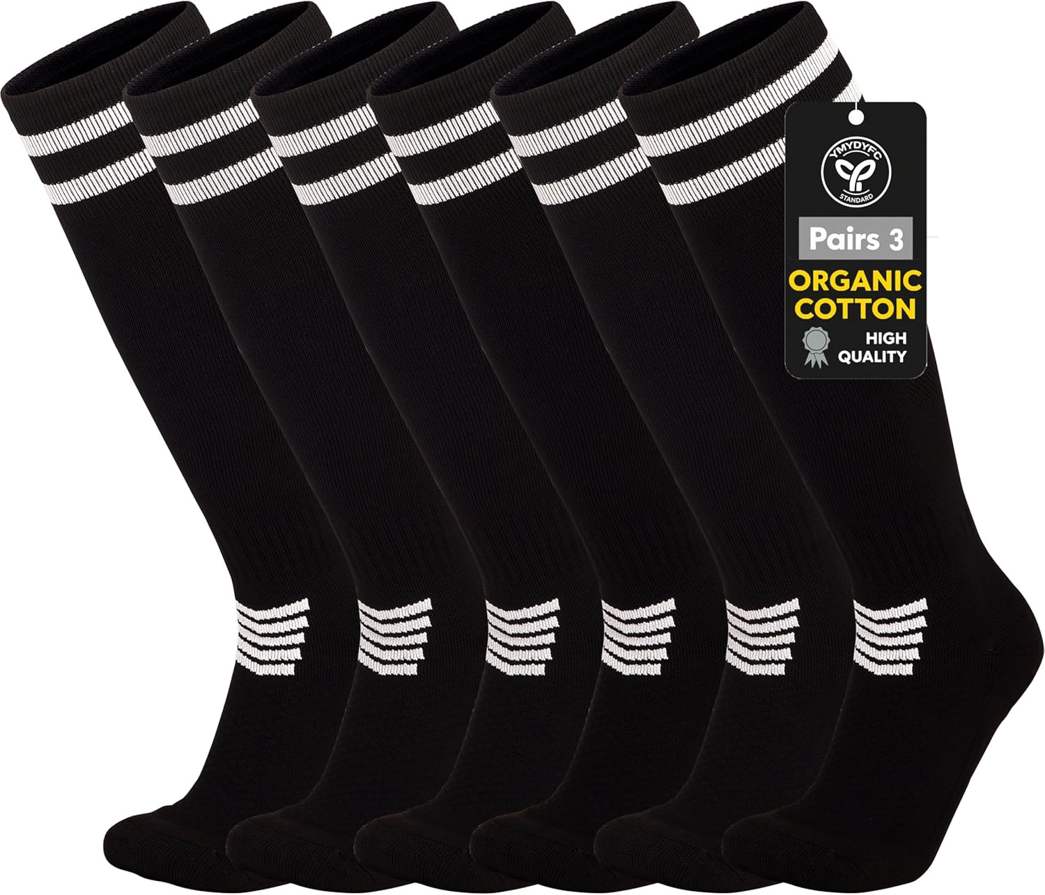 Kids Soccer Socks 3-Pack Cushion Cotton Compression Knee High for Youth Toddle