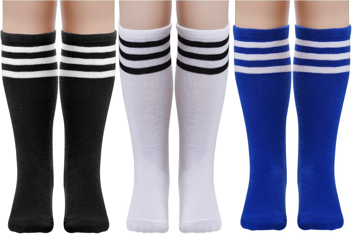 3 Pairs Stripes Knee High Tube Socks for Kids - Cotton Sports Socks