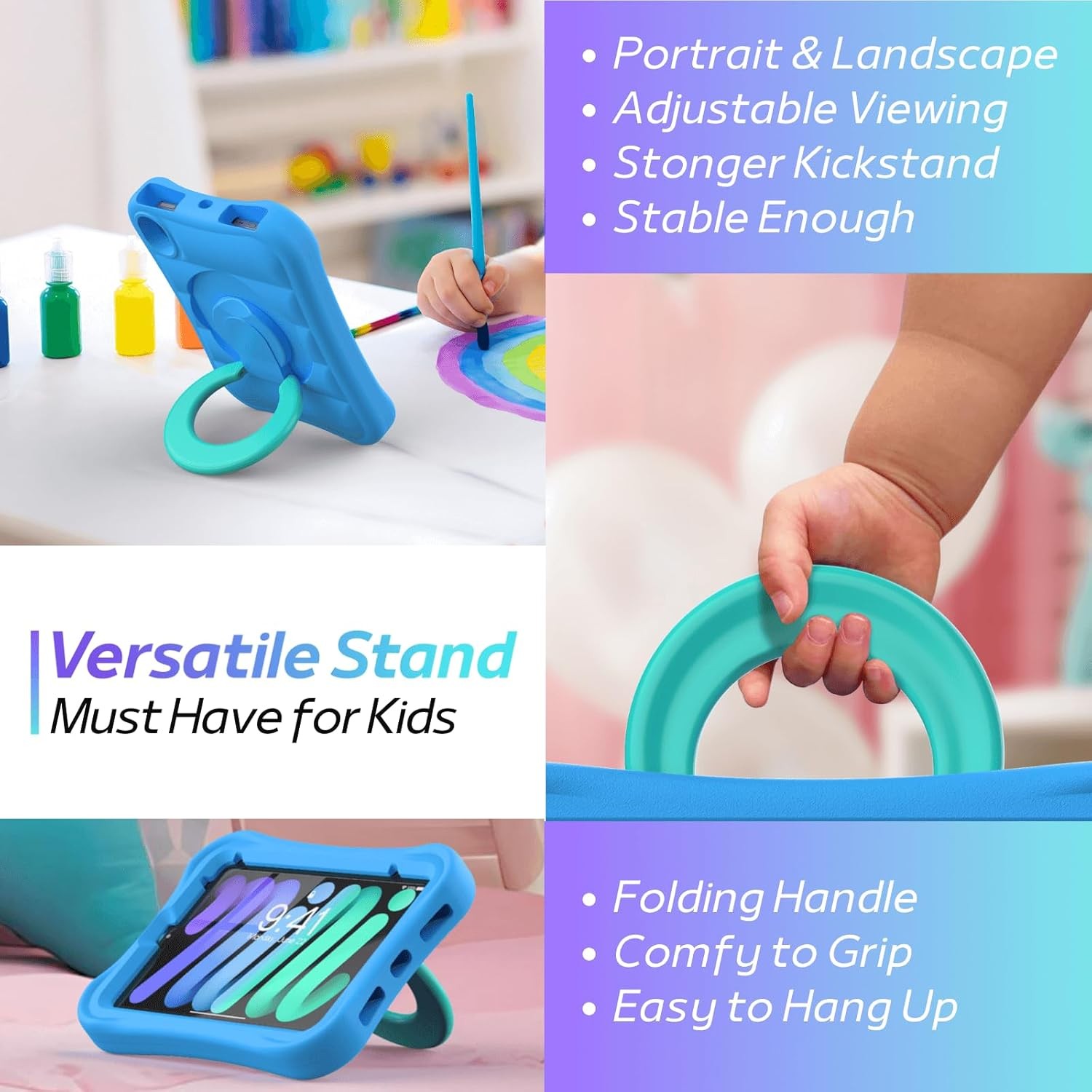 Kids Case for iPad mini 7 A17 Pro 2024 / Mini 6th Gen 2021 8.3 inch Blue