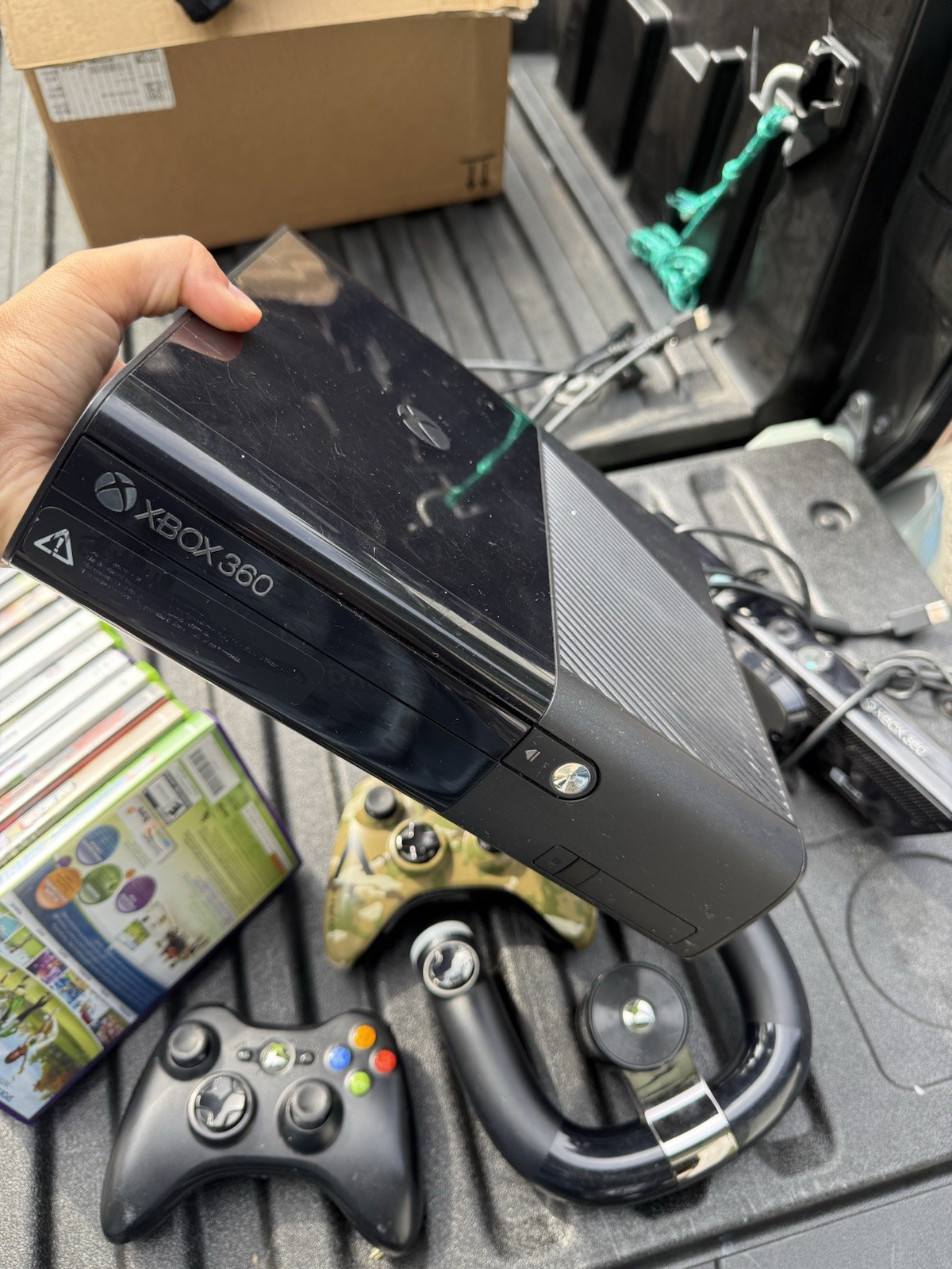 как выглядит Xbox 360 E Console Bundle with 14 Games Kinect Sensor 3 Controllers Wheel фото