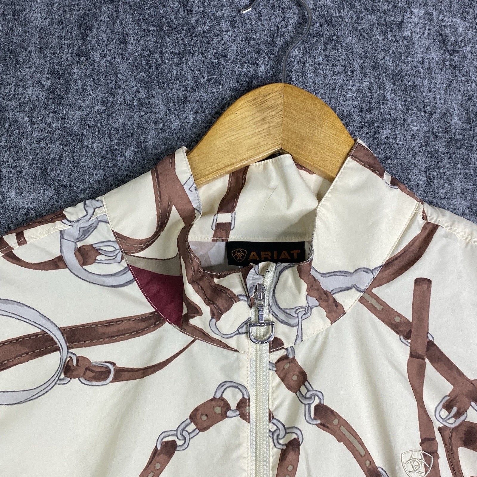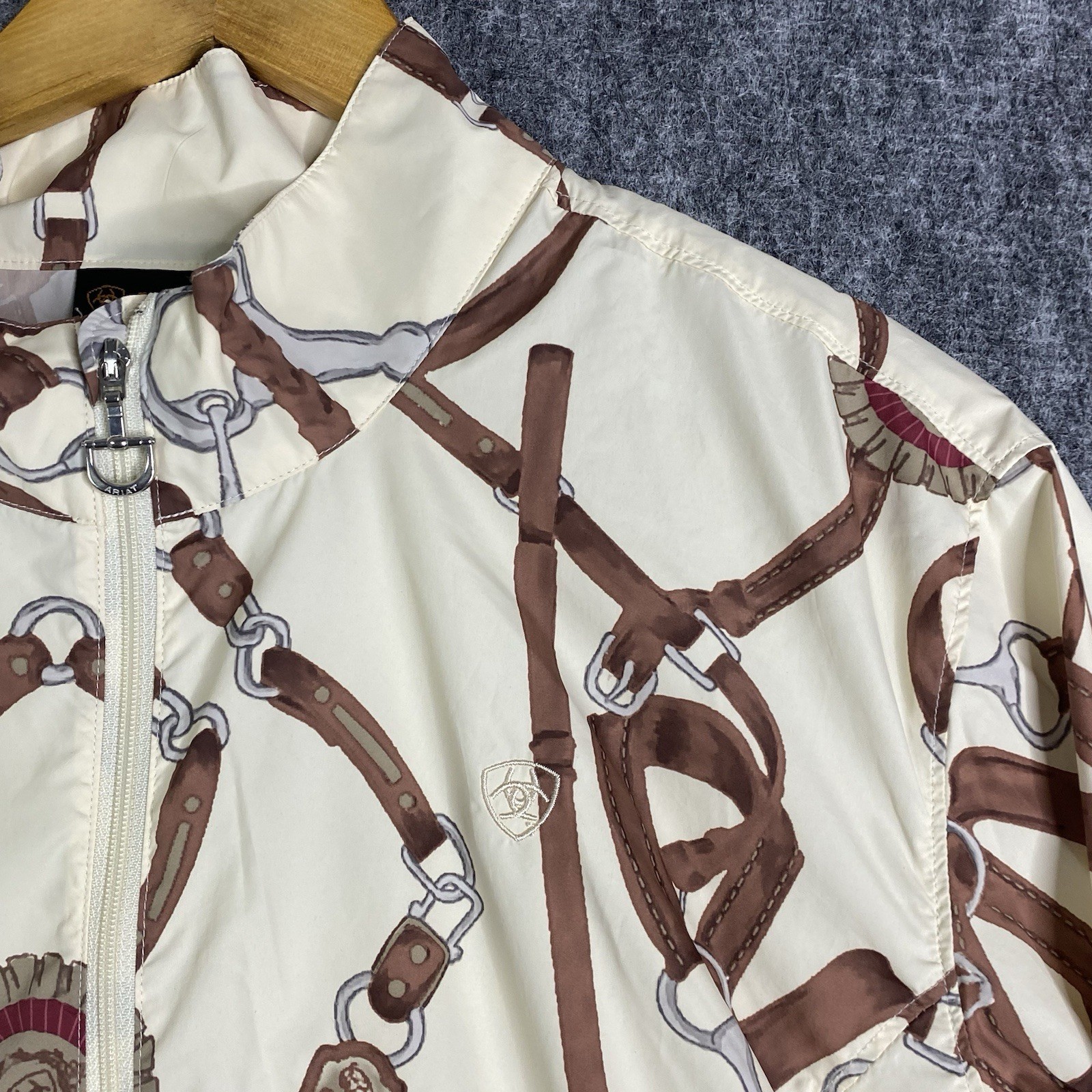 Ariat Womens Windbreaker Jacket XL Beige 1/2 Zip Western Print Light Pullover