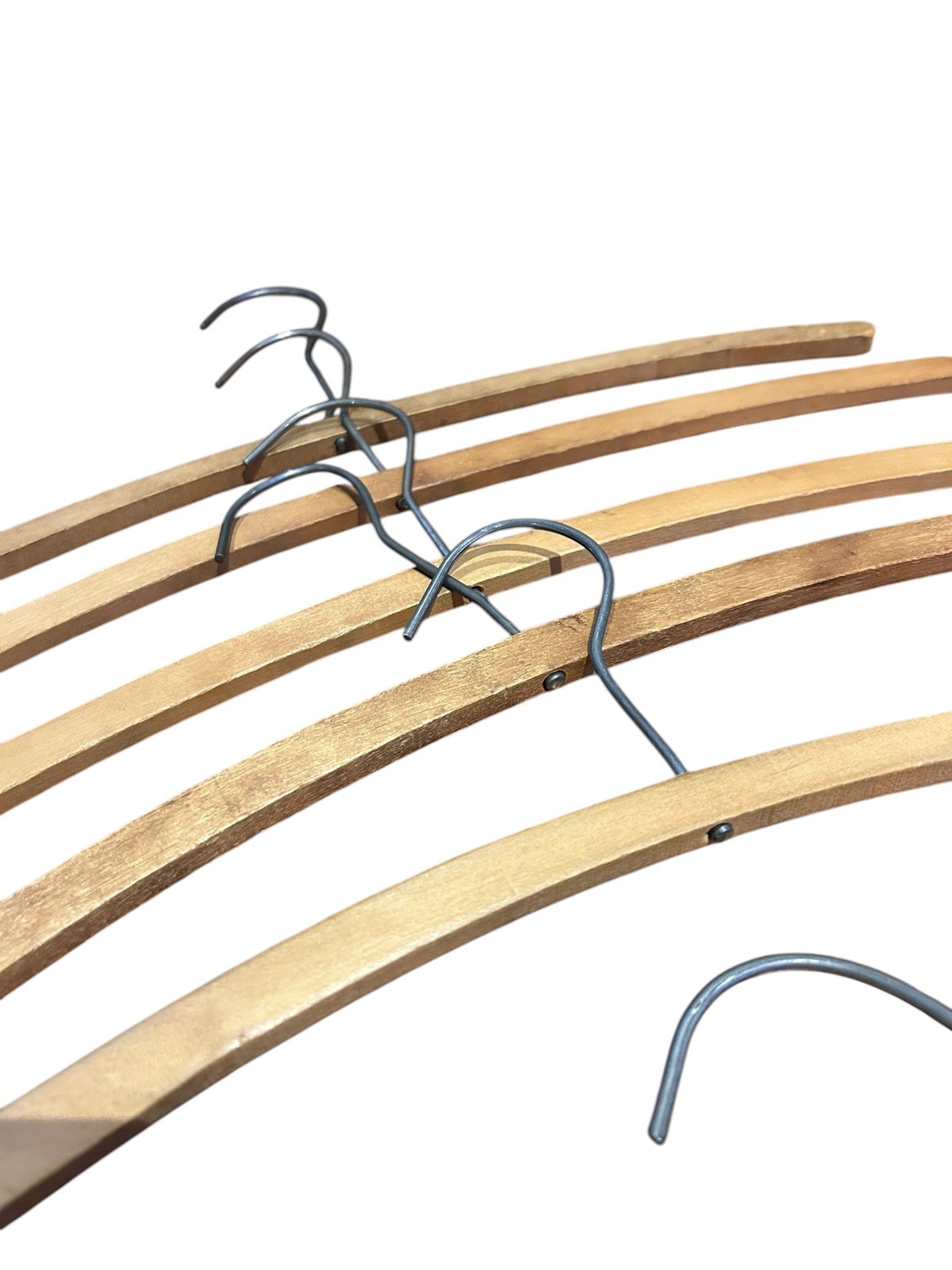 Vintage Wooden Metal Clothes Hangers Lot 1900s Round Shoulder 13 Pcs