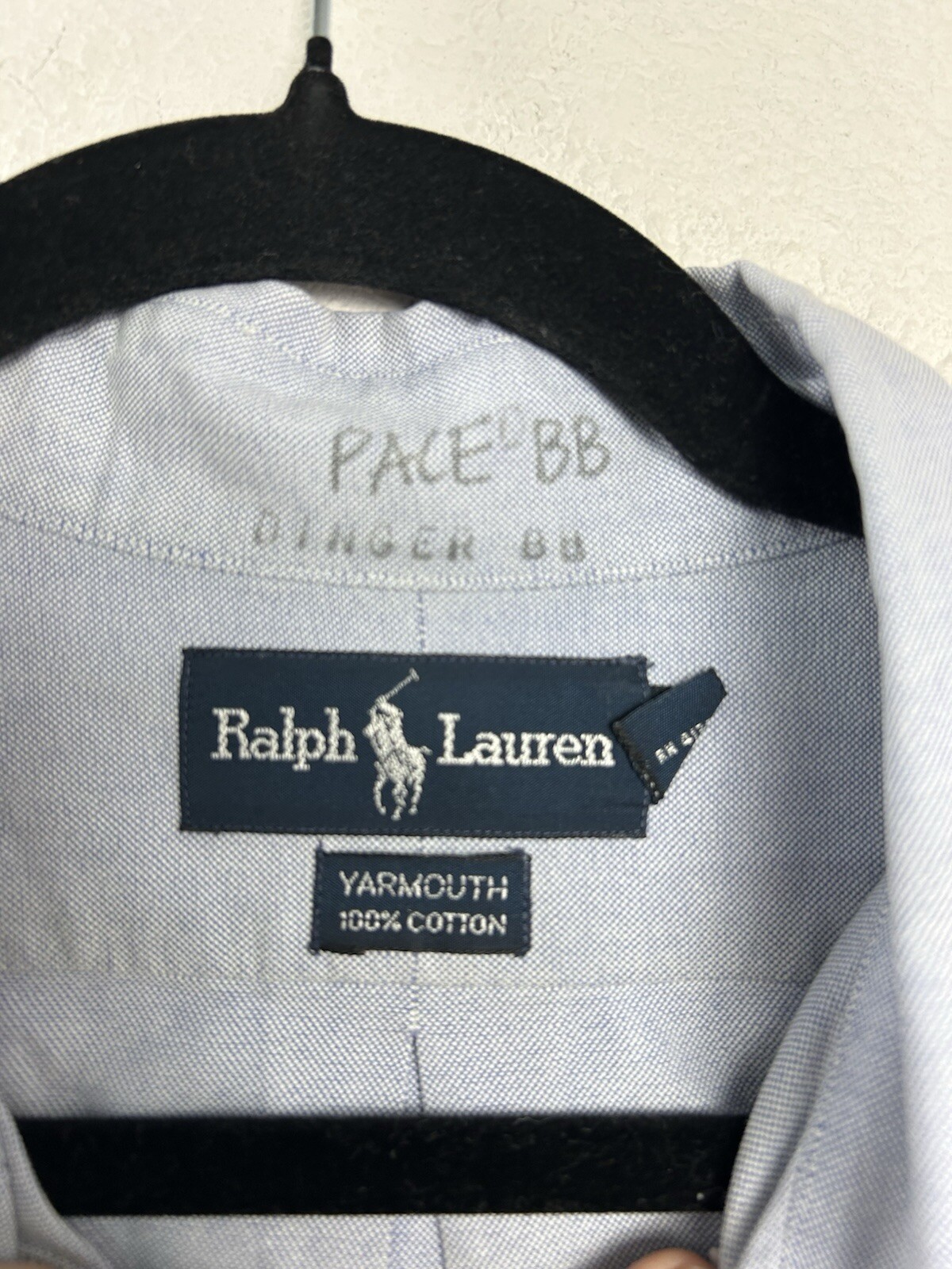 как выглядит Ralph Lauren Yarmouth Button Shirt Mens Sz 16.5 35 Blue Oxford Flesh Pony Preppy фото