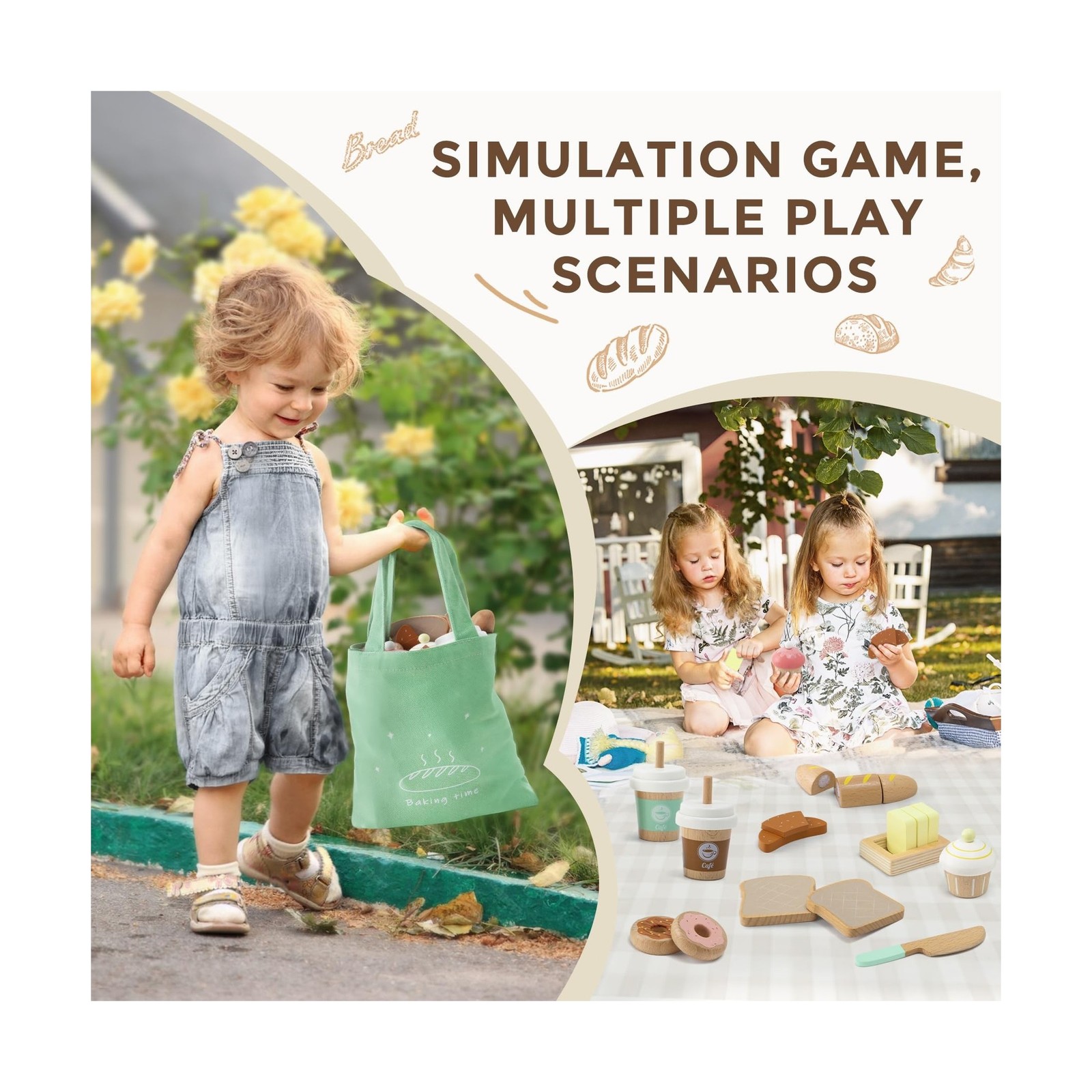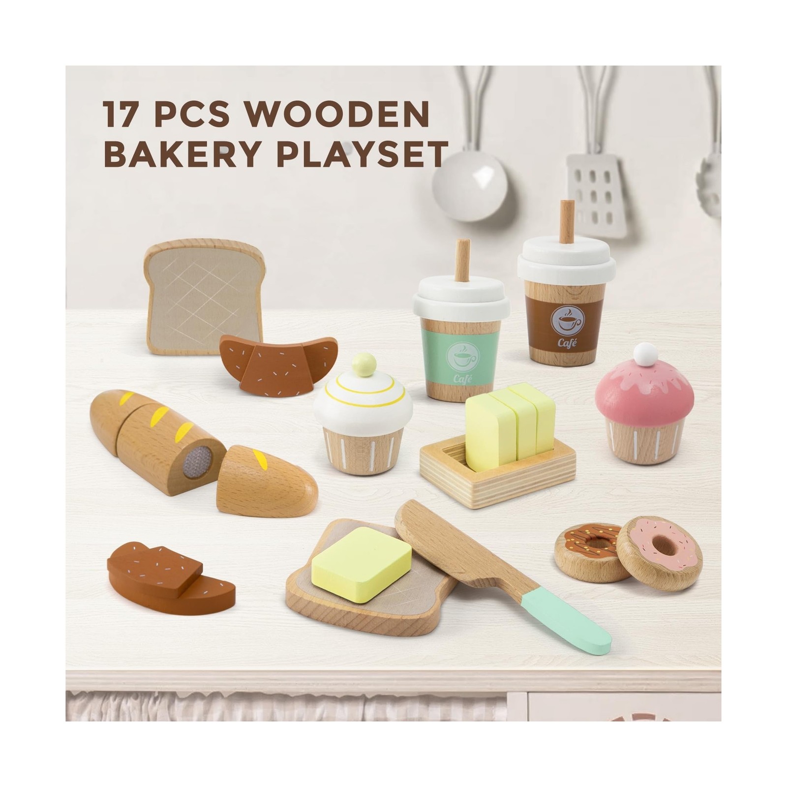 17 PCS Wooden Bakery Toy Food Playset for Kids, Pretend Picnic Play... Fast Ship