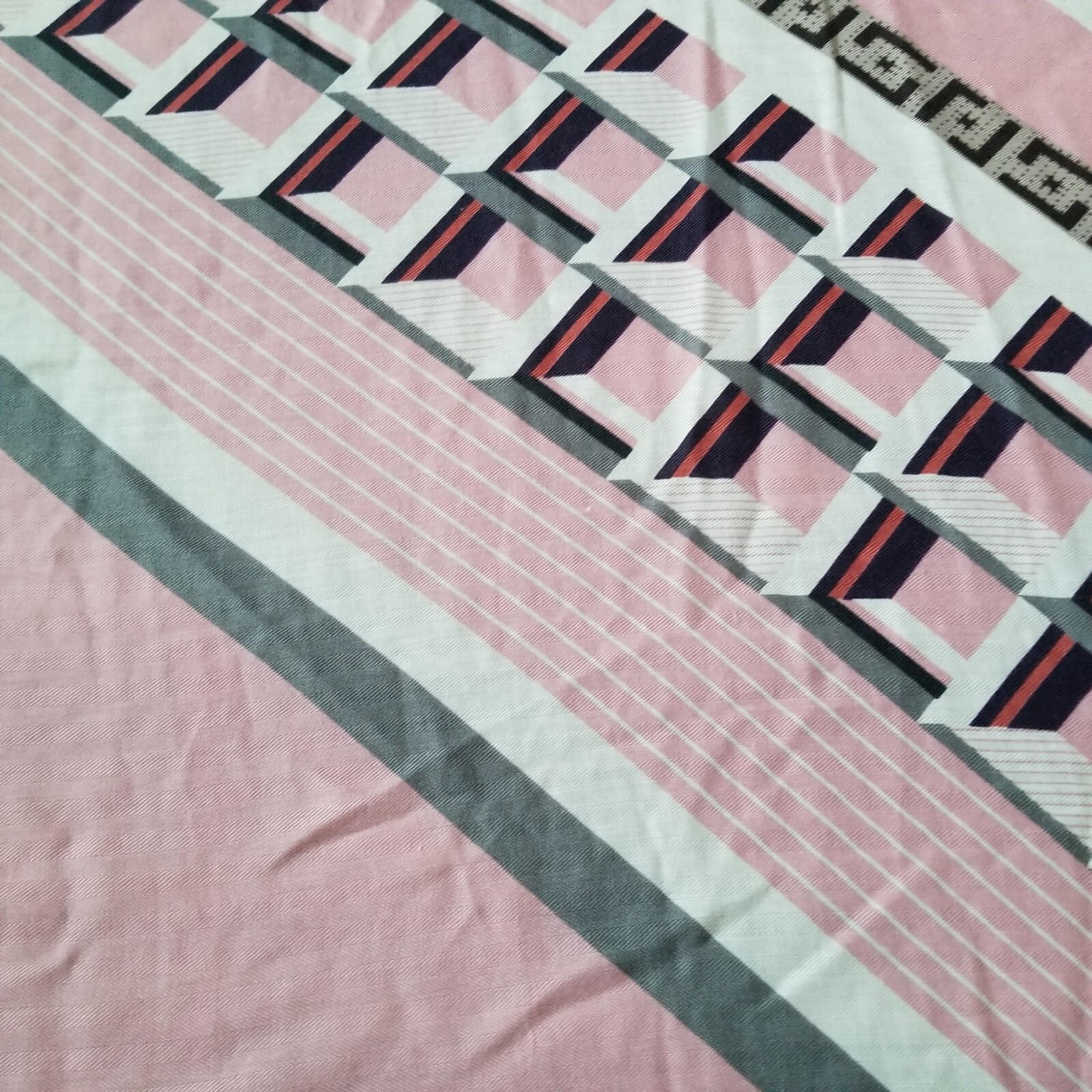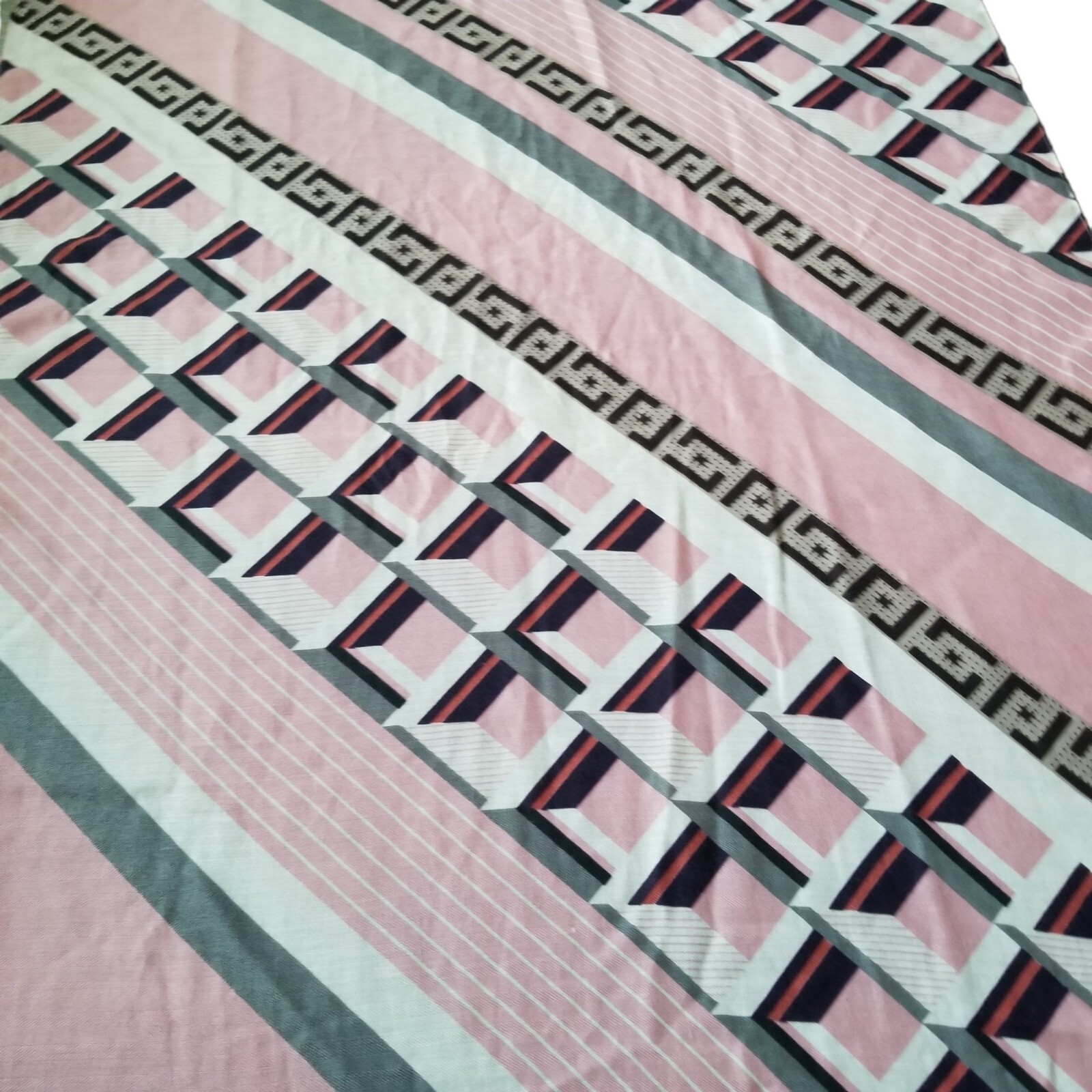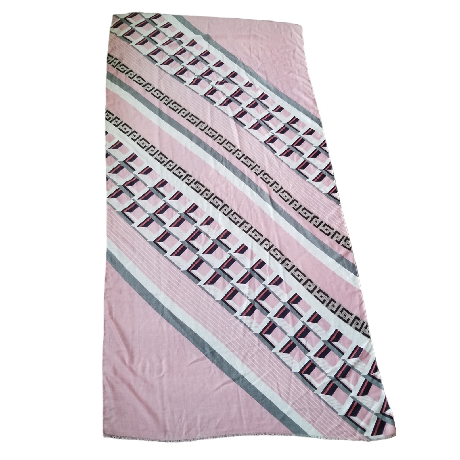 как выглядит Vintage Scarf Womans Fashion Accessory Rectangle Pink White Gray 70" x 34.5" фото