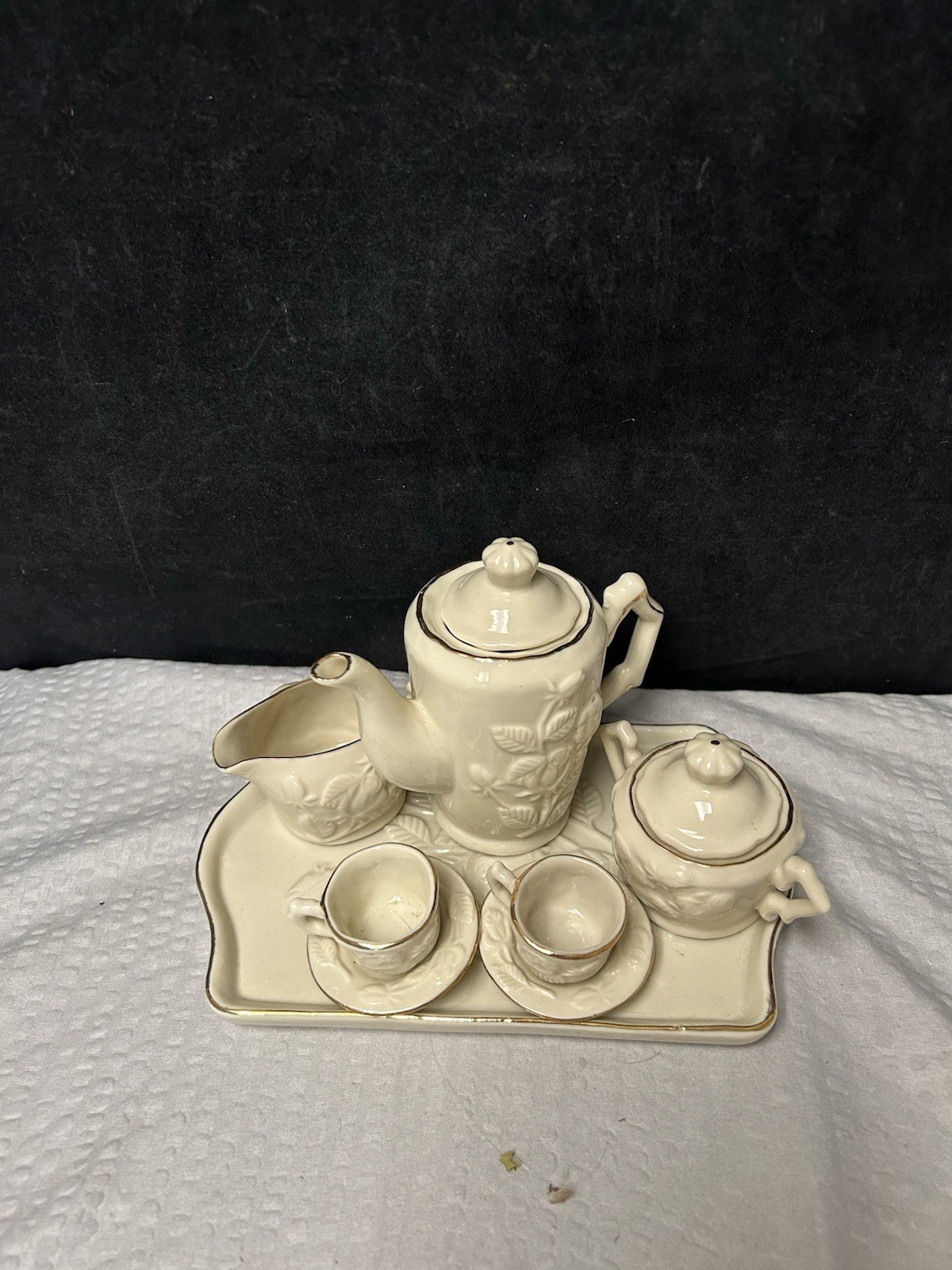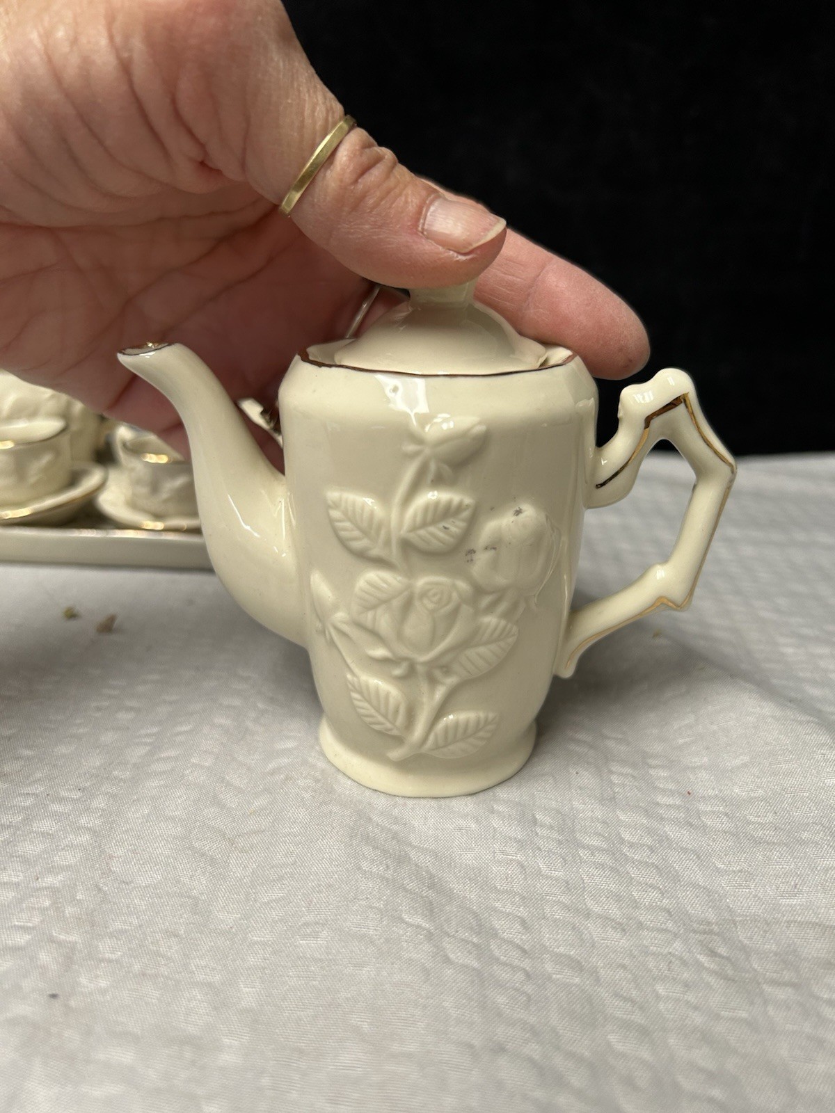 • Vintage MINATURE Ivory Complete Tea Set with Rose Design