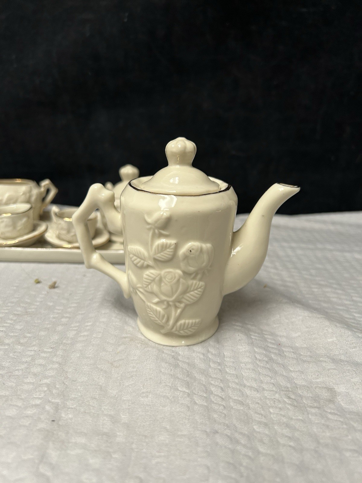 Vintage MINATURE Ivory Complete Tea Set with Rose Design