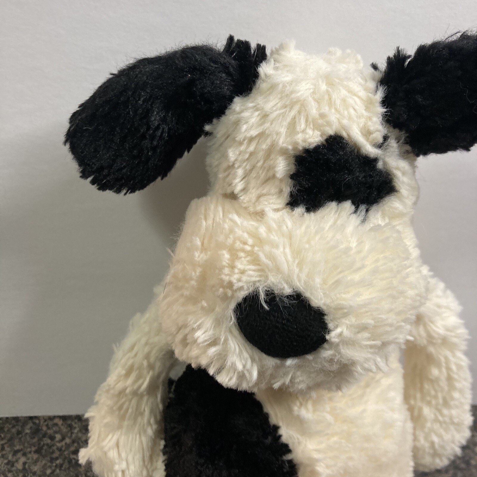 как выглядит Jellycat Medium Bashful Puppy Black and Cream Plush 12" Spotted Dog фото