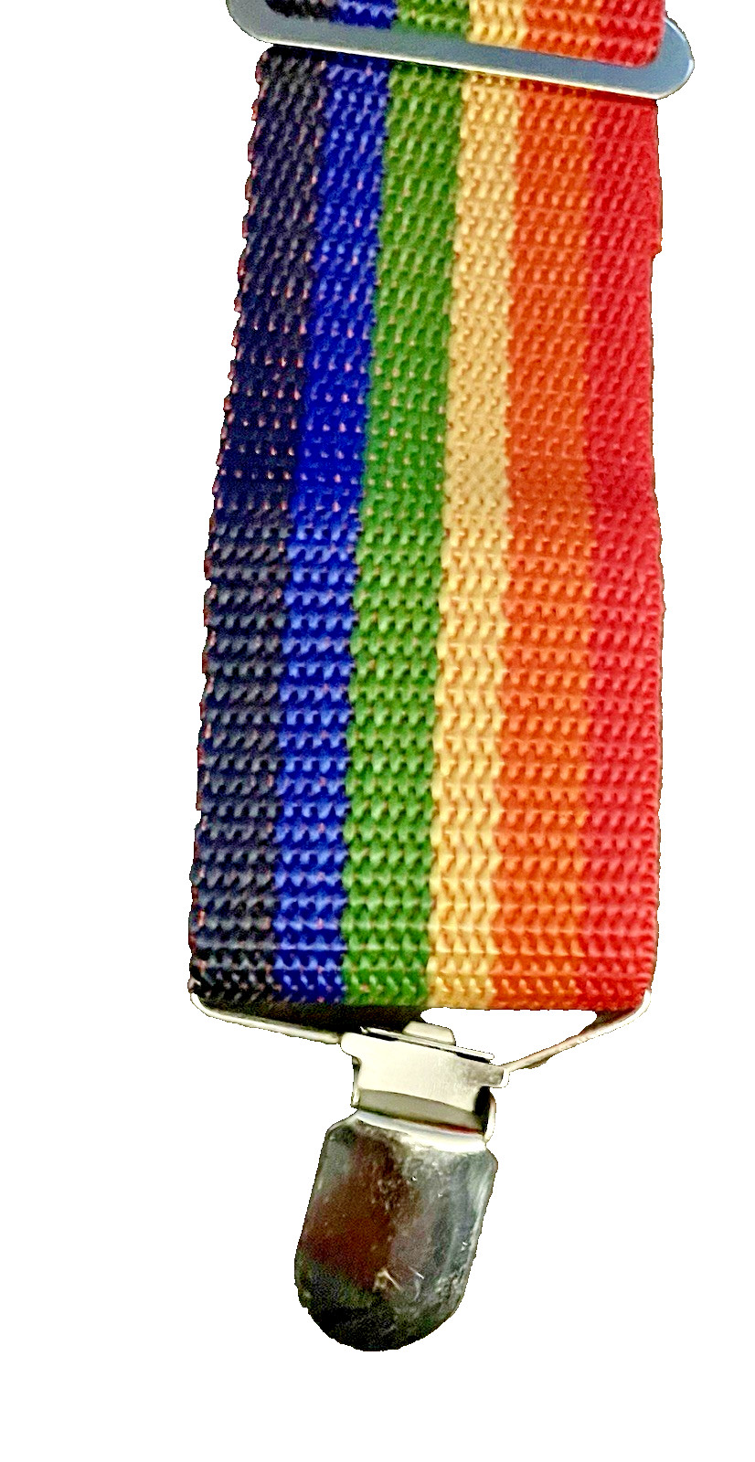 VTG 70 s Mork from Ork Rainbow Belting Suspenders Pride Unisex Lobster Claw