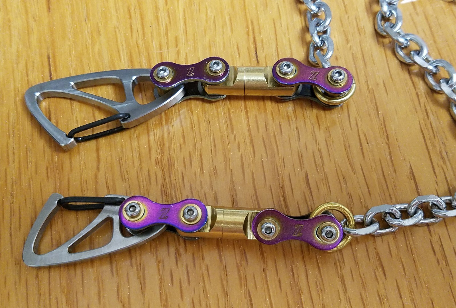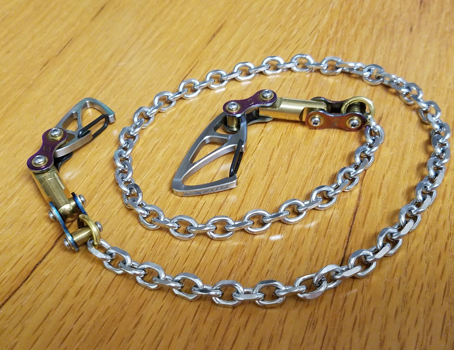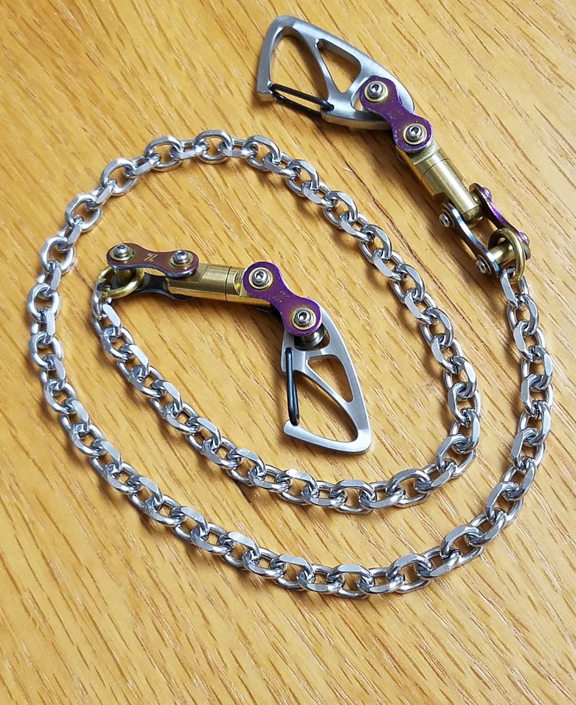 Biker Wallet Chain w/Titanium Carabiners, Stainless Steel Chain, 26.75 /67.94cm