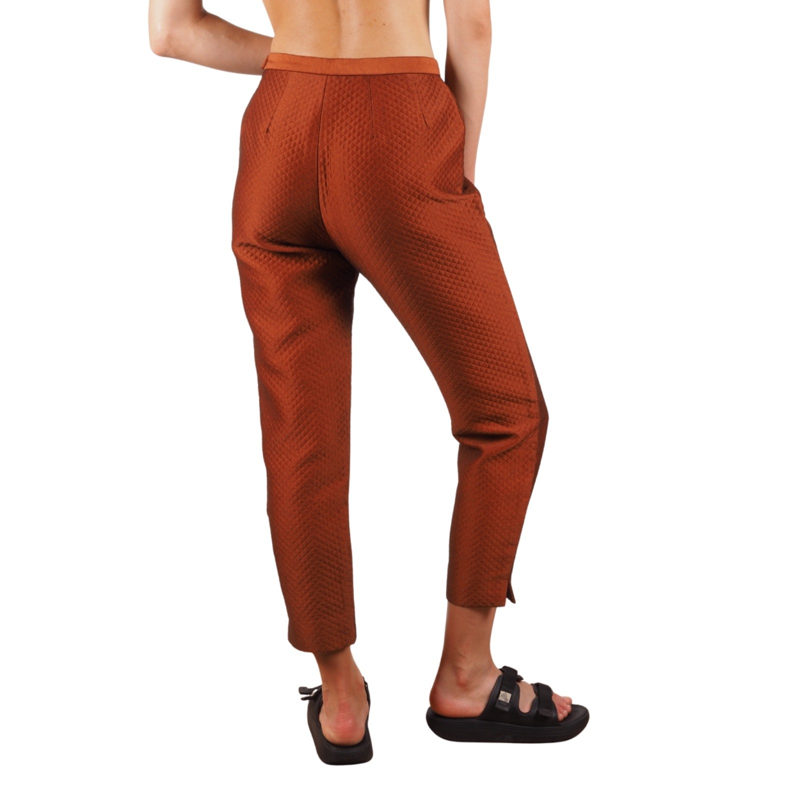 Kenzo Vintage 90s Women's Cropped Tapered Textured Pants Rust Brown FR 40 / US 8
