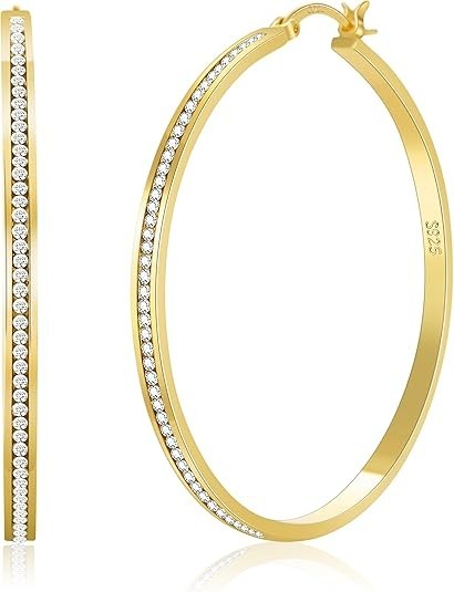925 Sterling Silver Hoop Earrings for Women Sparkly Large Rhinestone Hoop