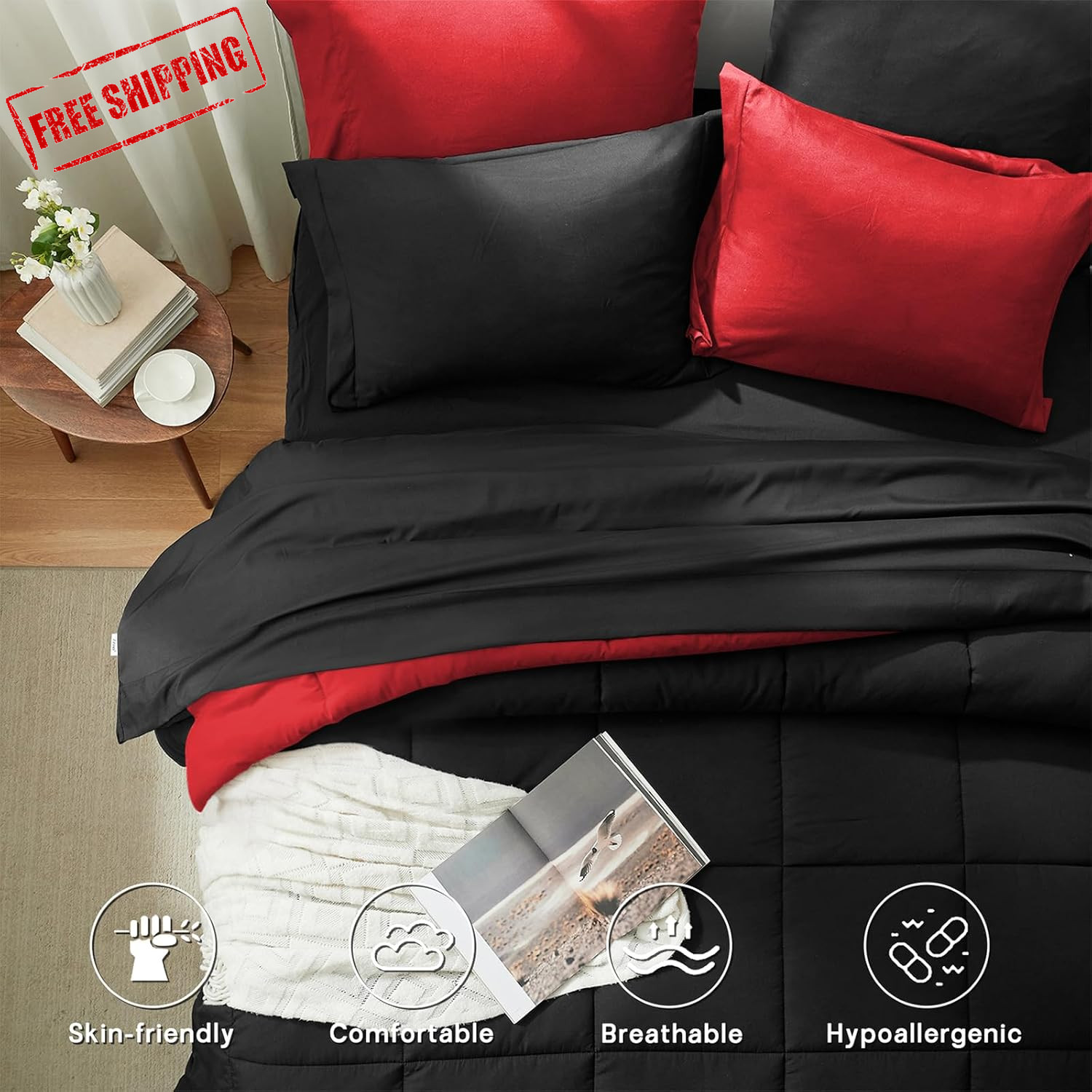 Queen Comforter Set 7 Piece, Reversible Bed in a Bag Queen Size, Lightweight Bed