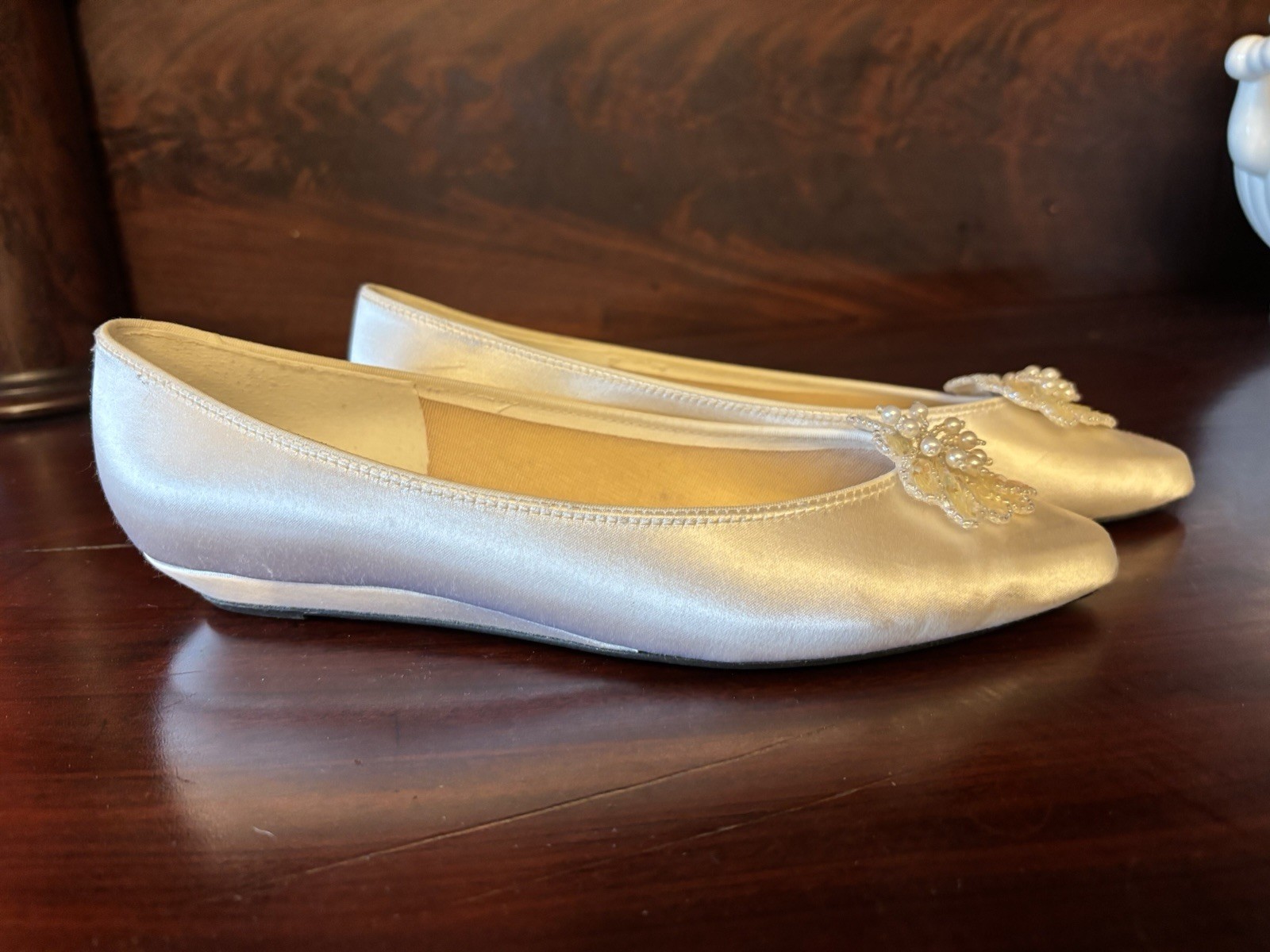 как выглядит Ivory Bridal Flats  Satin, Pearls Sequins Wedding Slippers Sz 8.5 фото