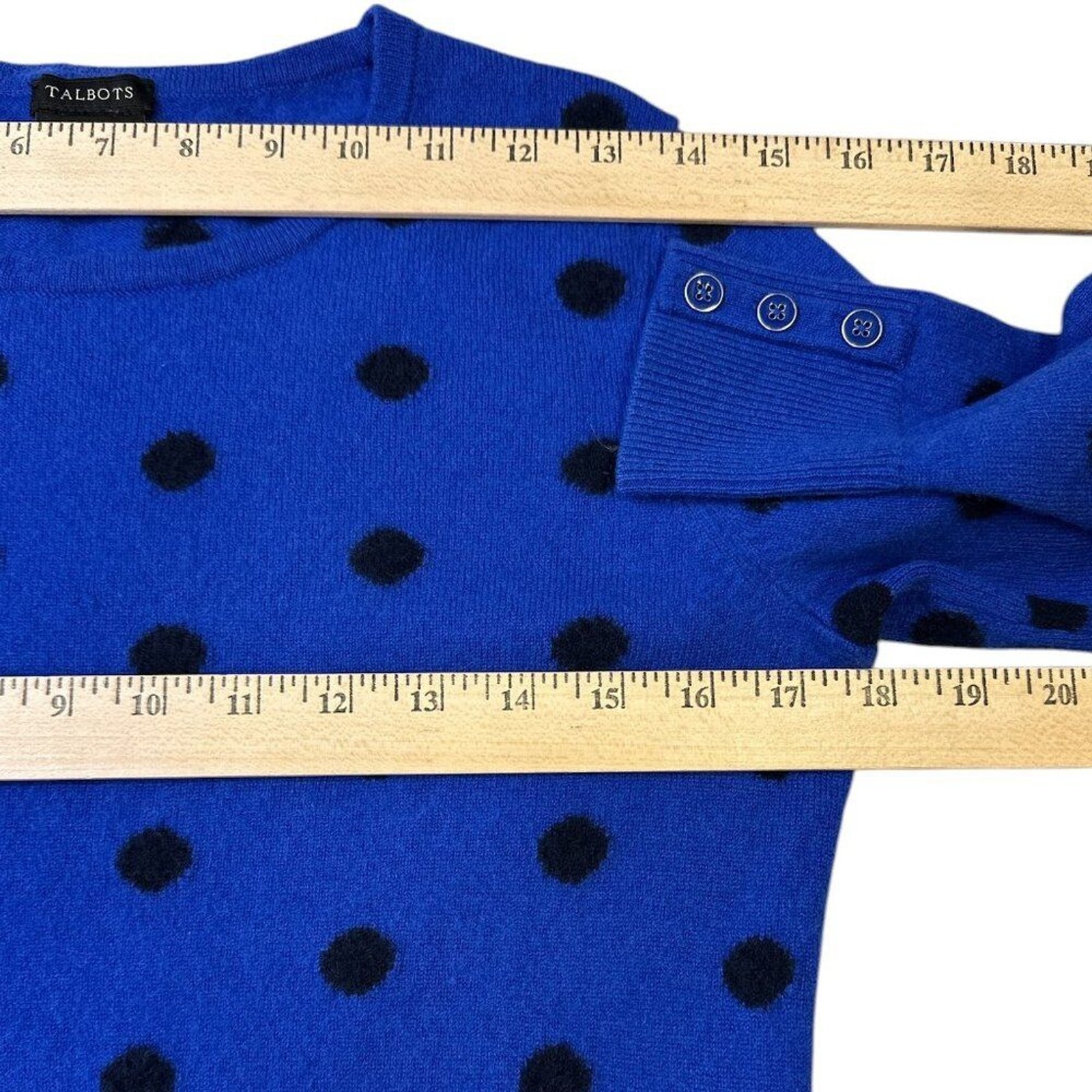 как выглядит Talbots Cashmere Sweater Button Cuff Crewneck Dot Sz S Soft Classic фото