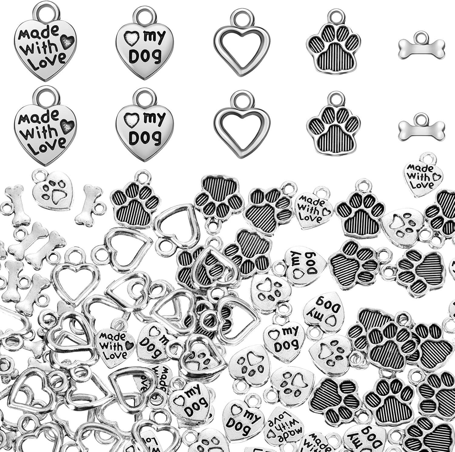 120 Pieces Animal Paw Charms Heart Shape Bead Pendants for Jewelry Making