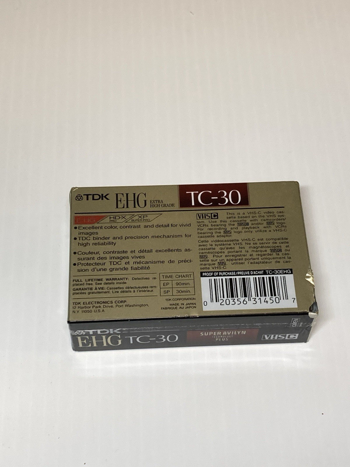 TDK E-HG TC-30 Video Camcorder Cassette Tape Super Avilyn 30 Min