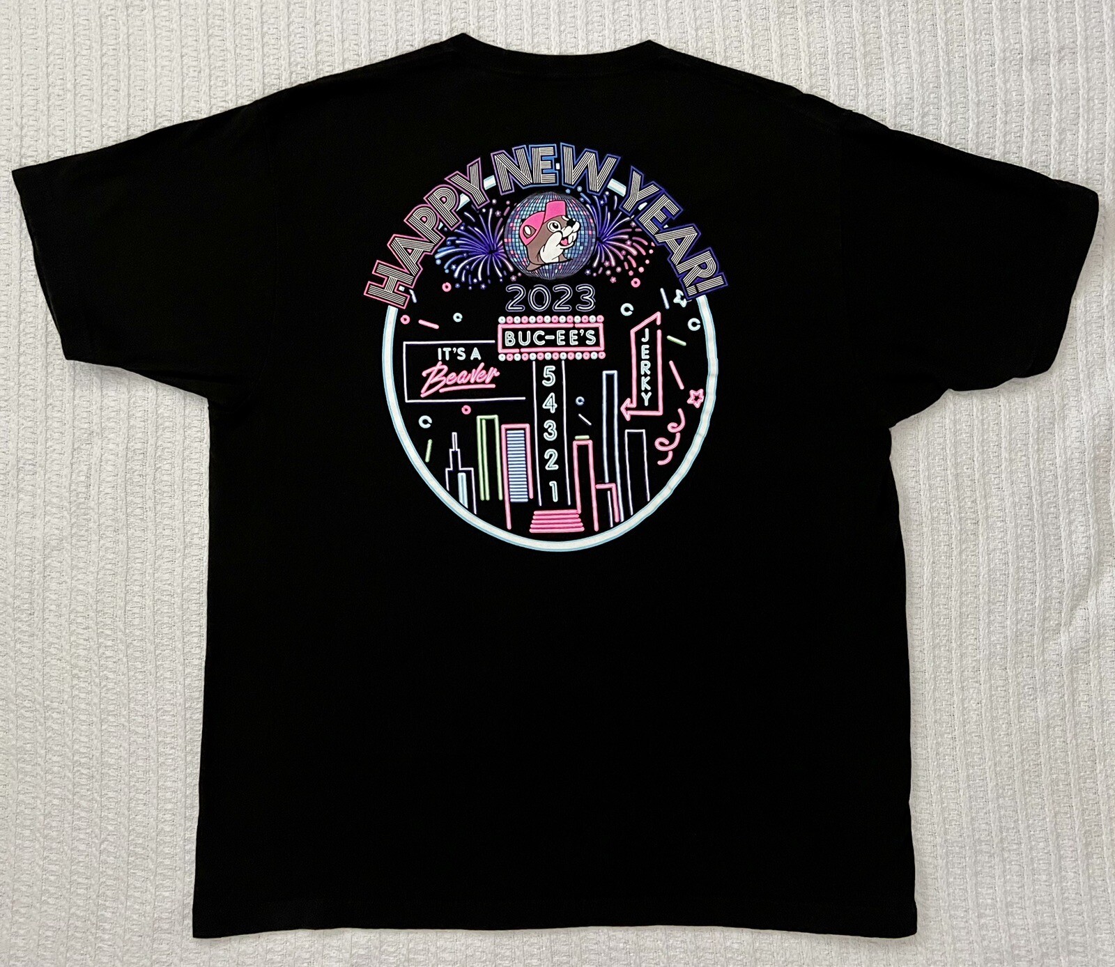 Buc-ee's T Shirt Adult XL 23 X 29 Black Happy New Year 2023 Short Sleeve