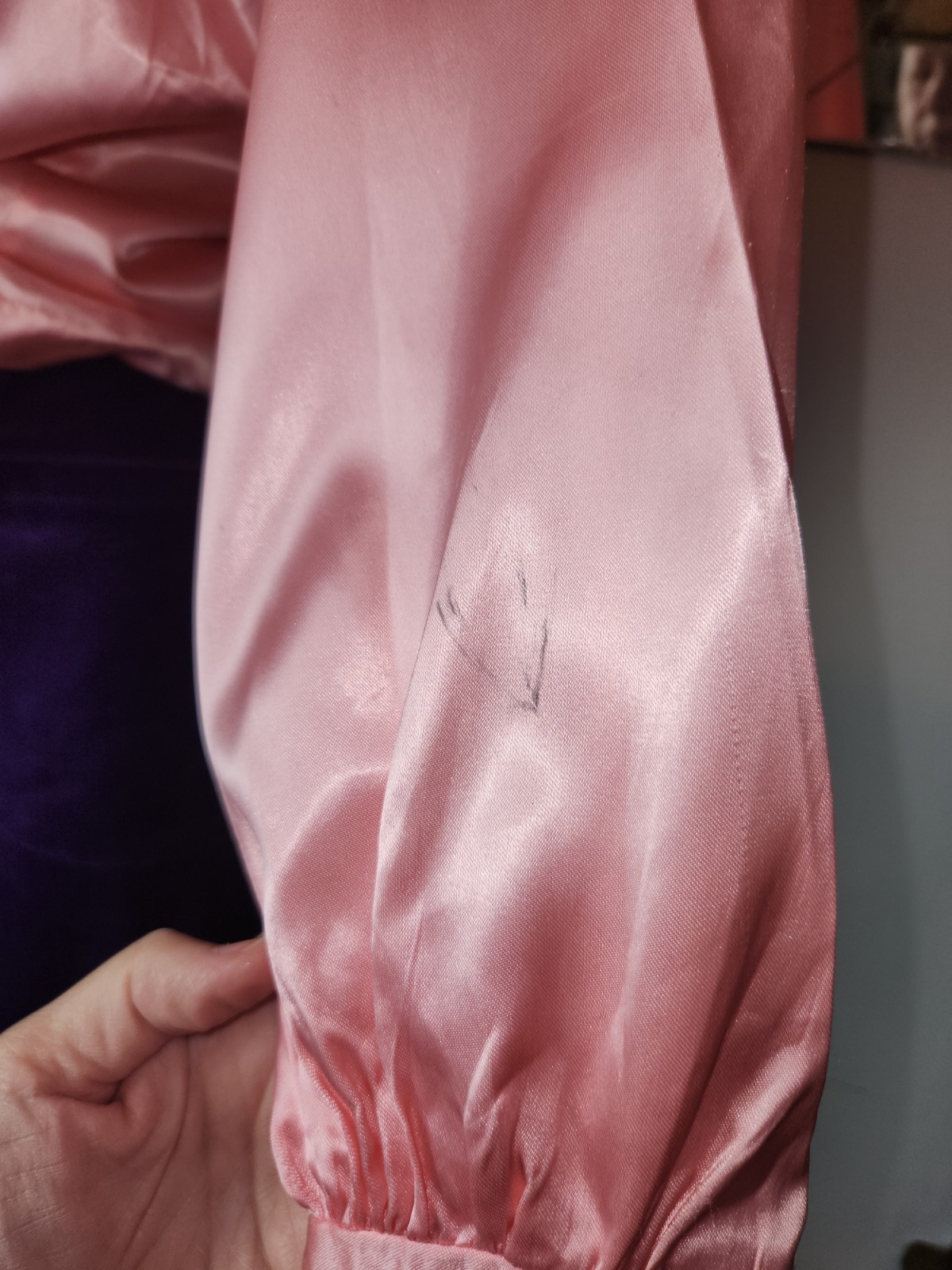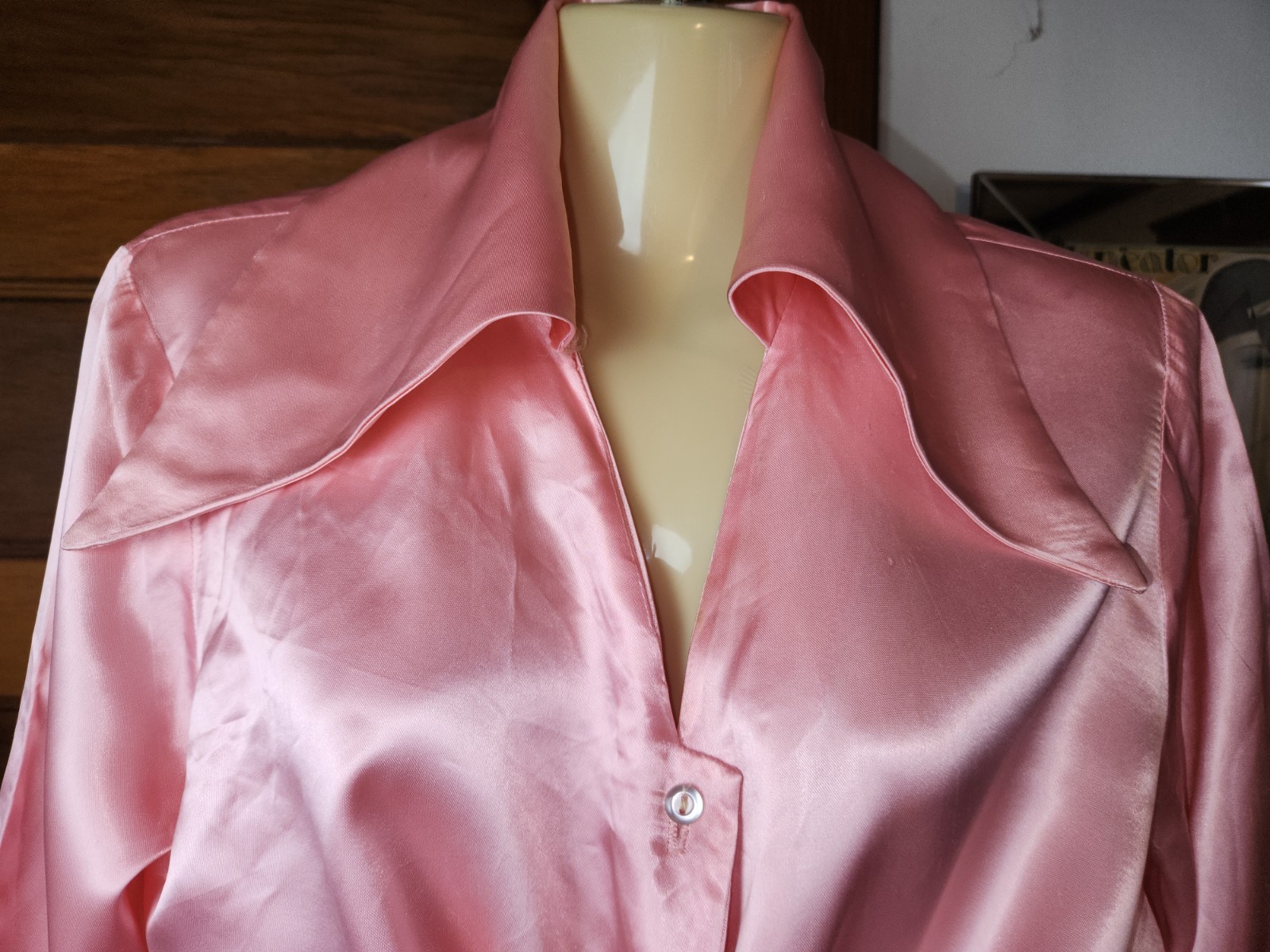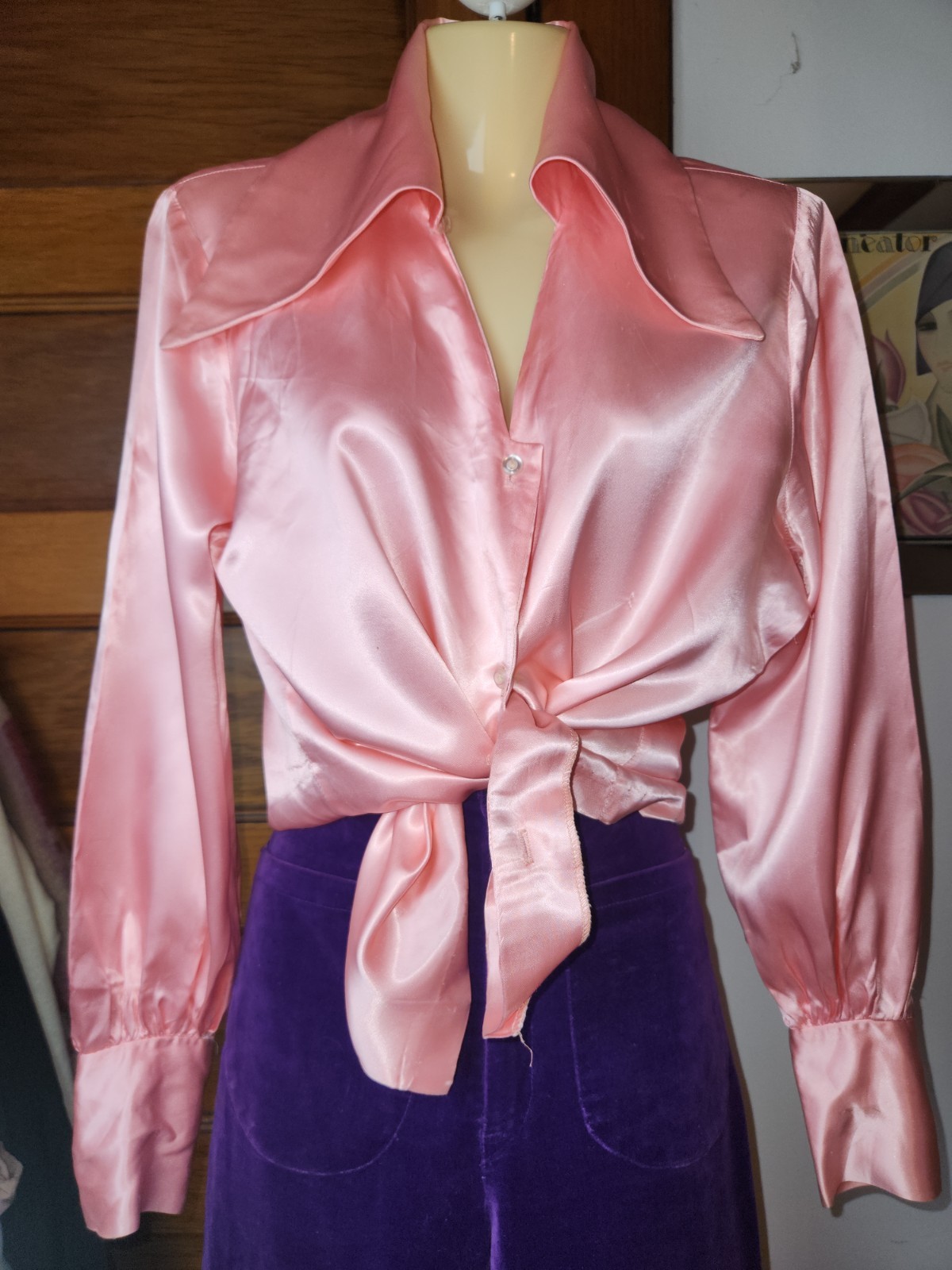как выглядит Vtg 70s Bell Bottom Purple Velvet Pants Pink Satin Blouse Dagger Colar фото