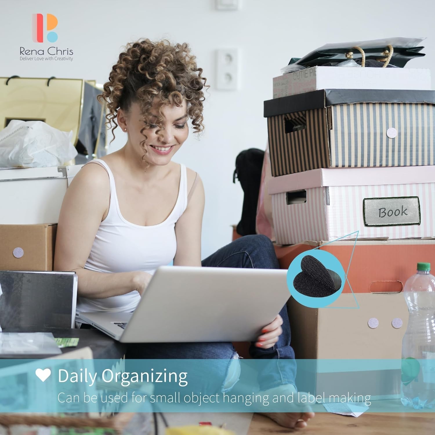 1000 Piece Waterproof Self-Adhesive Dots - Strong Hook Loop, 0.59 Diameter