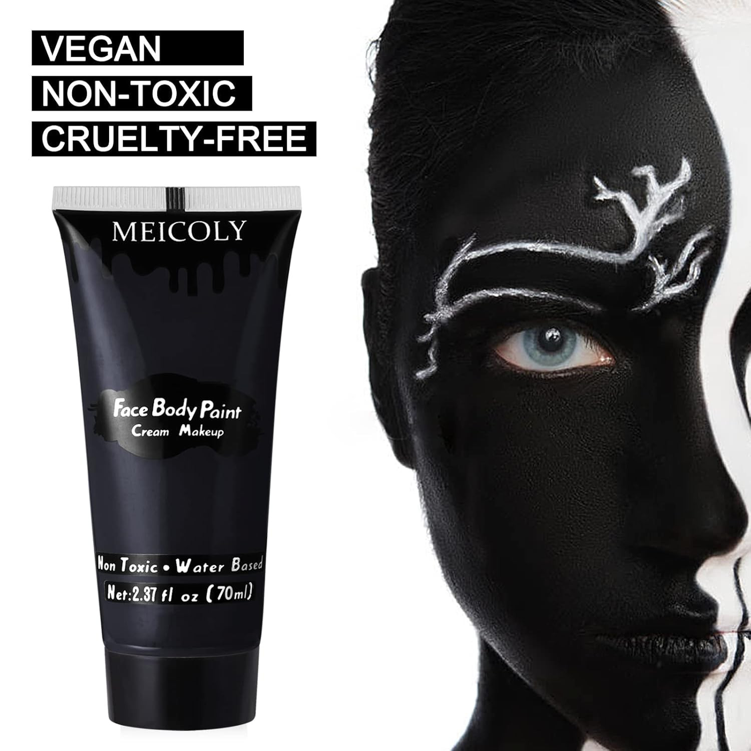 Black Cream Face Body Paint, 2.37Oz Large Tube Water Based Clown Black Makeup,Bo