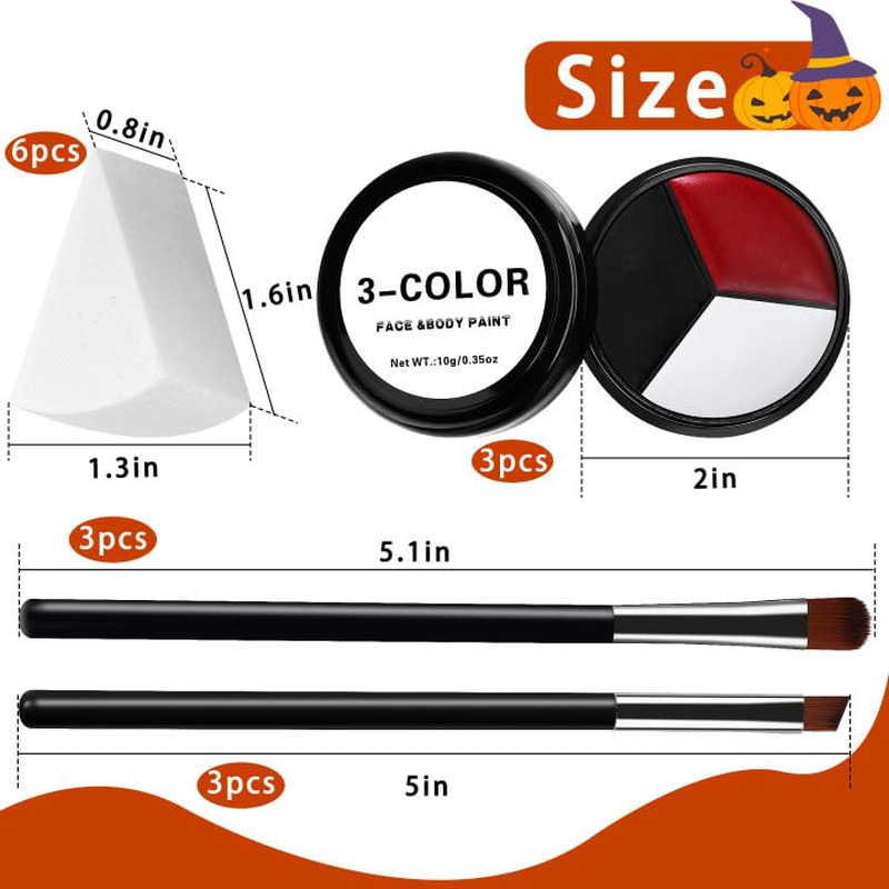 3 Set Black White Red Face Body Paint,3 Colors Clown Makeup Kit with Sponge and