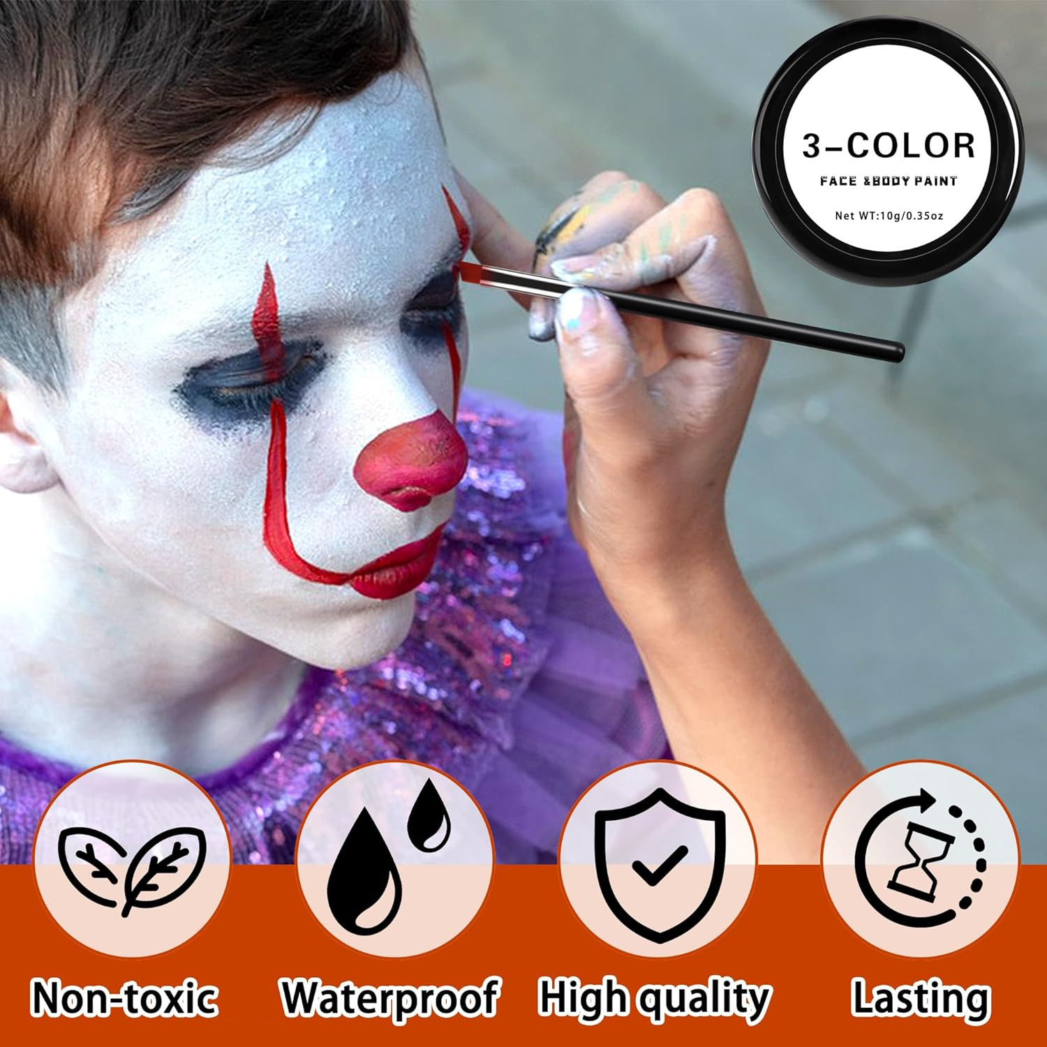 как выглядит 3 Set Black White Red Face Body Paint,3 Colors Clown Makeup Kit with Sponge and фото