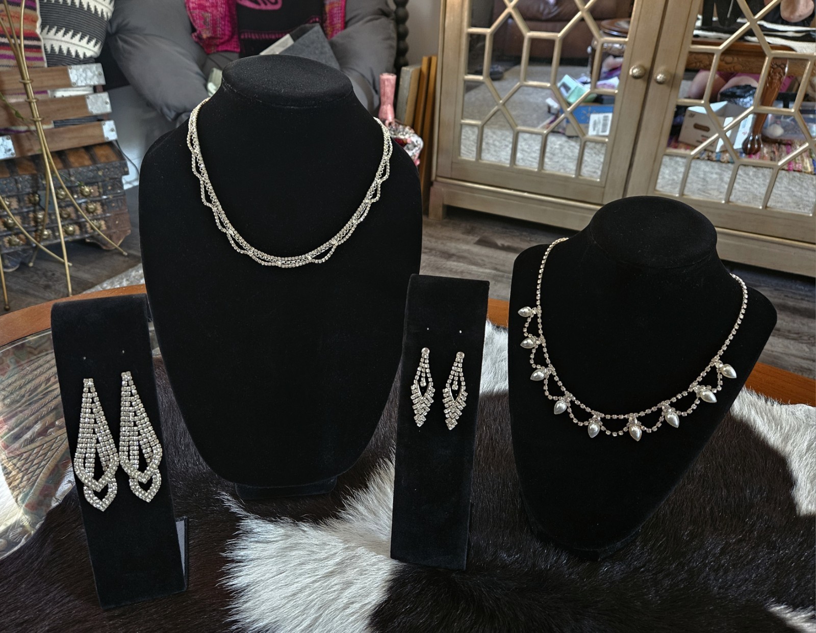 NWOT Claire's Rhinestone Jewelry Earrings Necklace Lot of 4