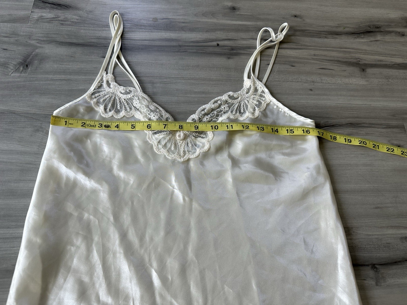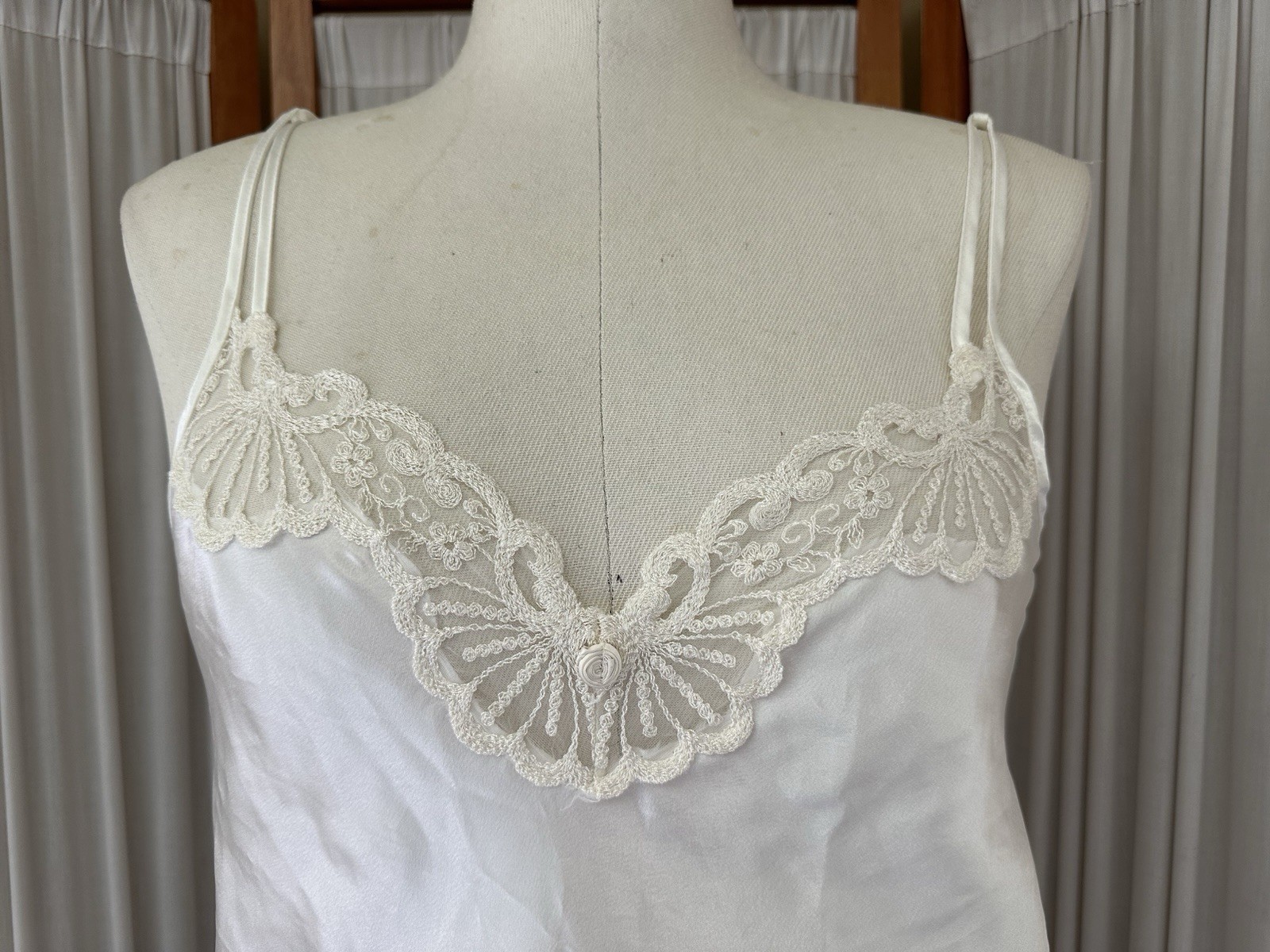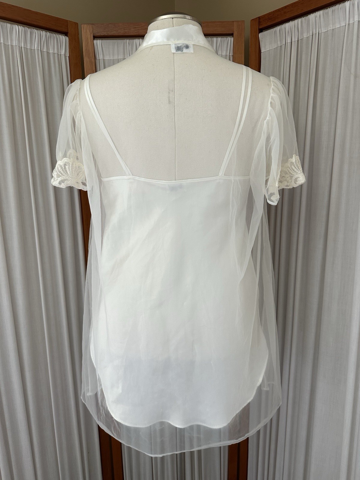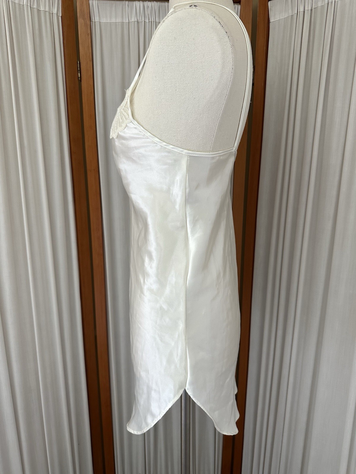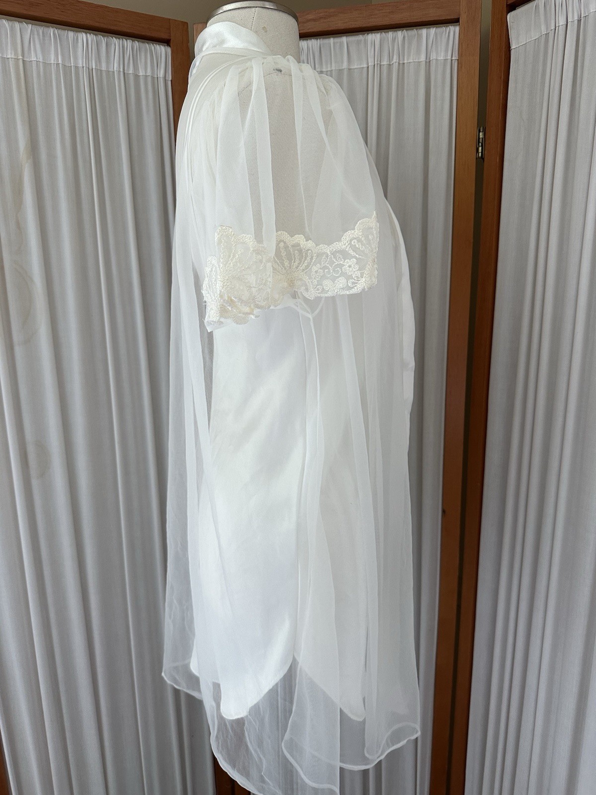 как выглядит Vtg 90s Cinema Etoile SMALL Ivory Sheer Lace Nightgown Slip Dress Chemise Robe фото