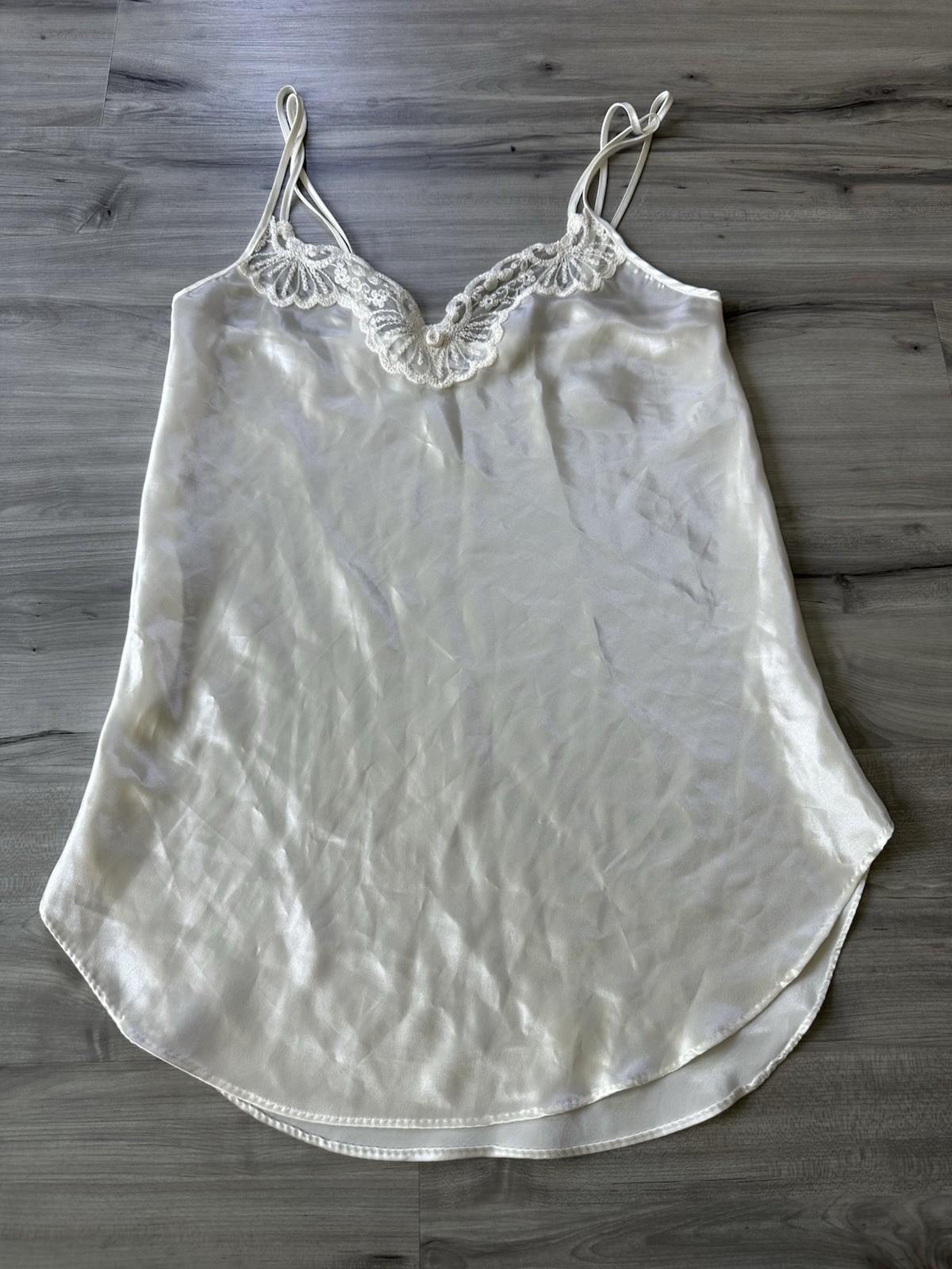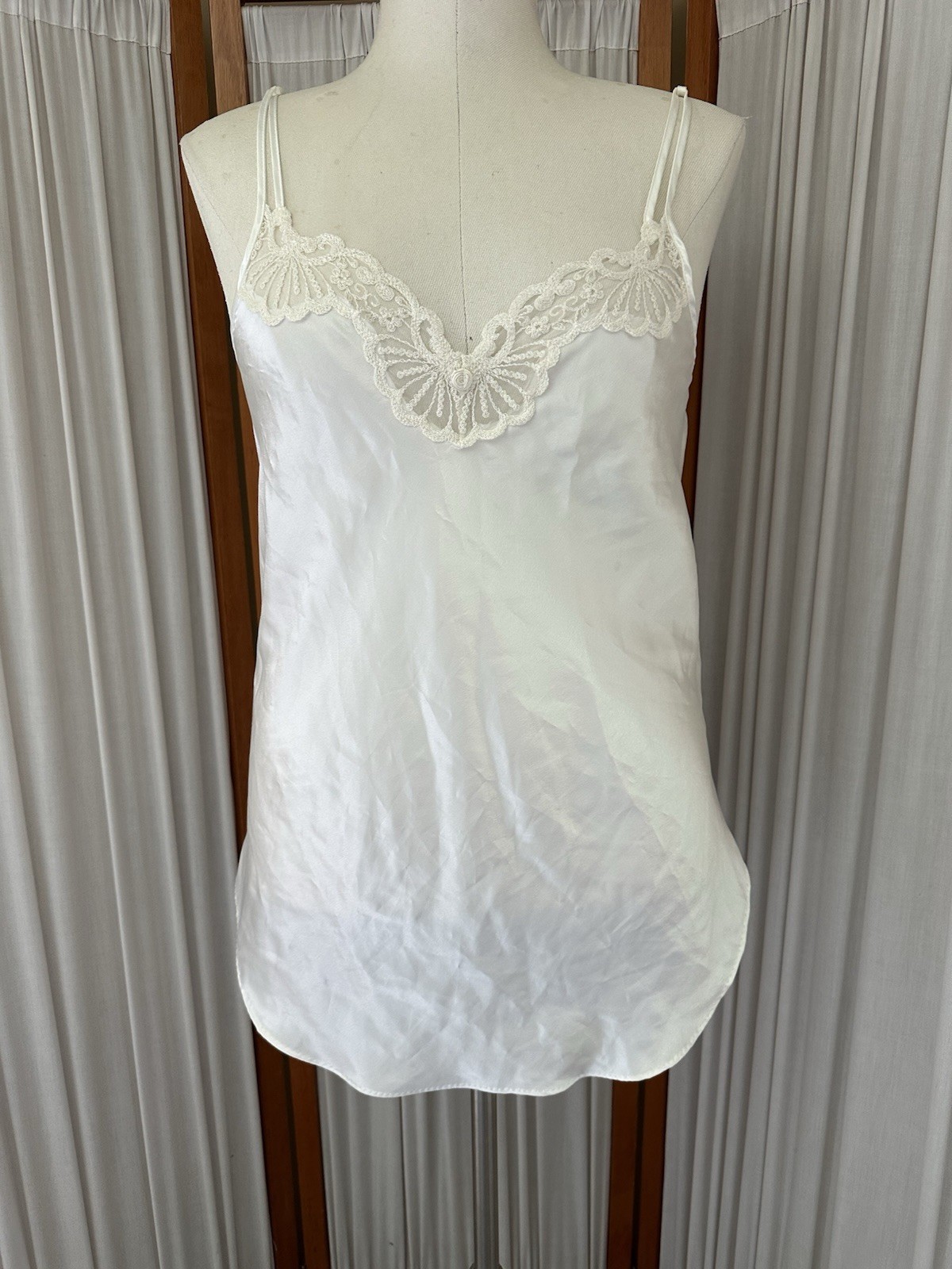 Vtg 90s Cinema Etoile SMALL Ivory Sheer Lace Nightgown Slip Dress Chemise Robe