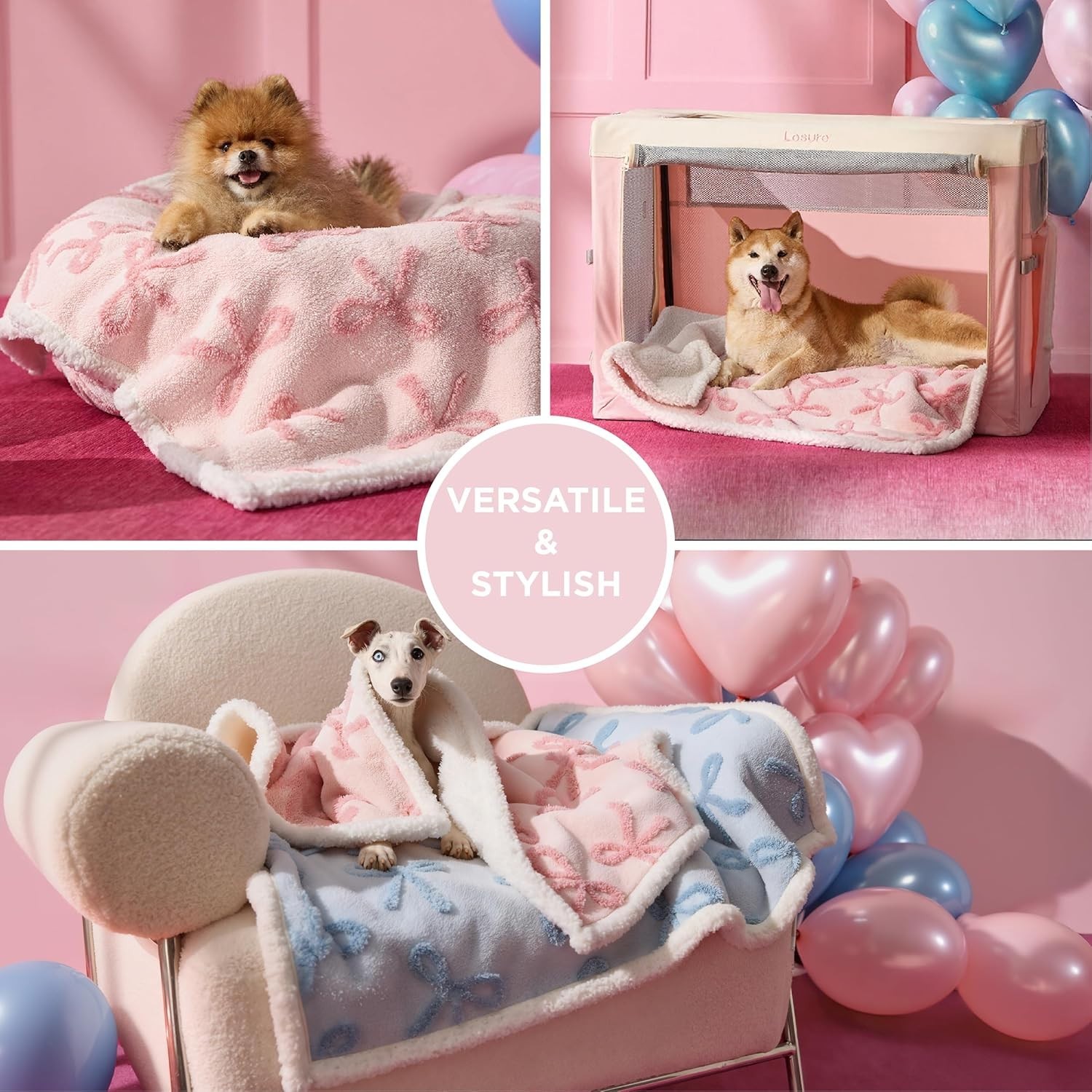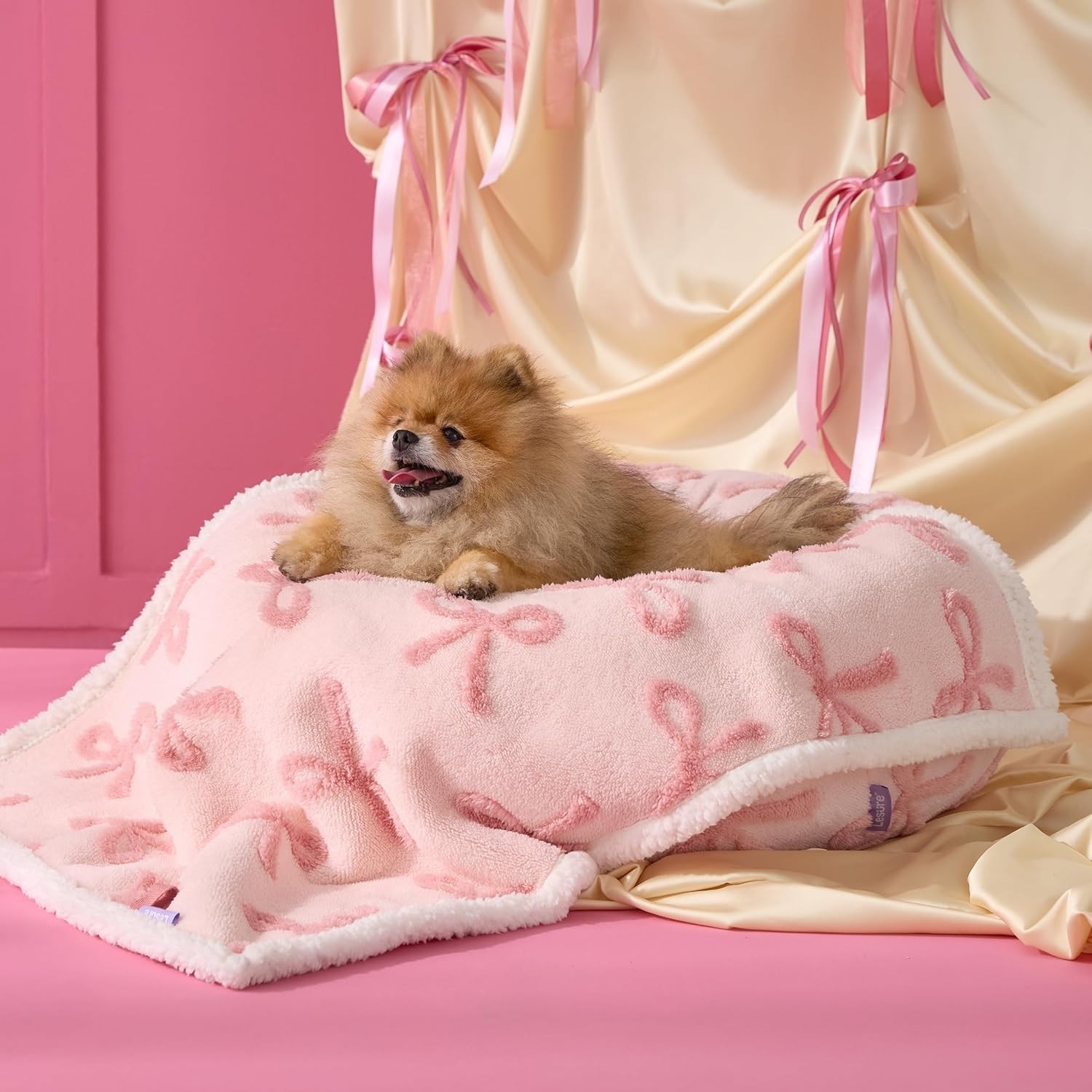 Waterproof Puppy Throw Blanket for Small Dogs - Cute Bow Pink Taffy Design