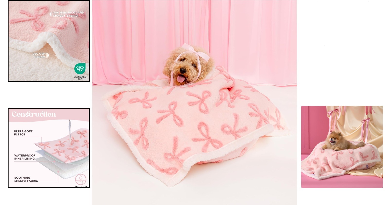 как выглядит Waterproof Puppy Throw Blanket for Small Dogs - Cute Bow Pink Taffy Design фото